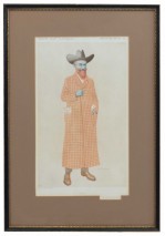 English lithograph caricature of George Bernard Shaw wearing a long coat in a black & gilt wood frame with brown matting (Alick P. F. Ritchie for VANITY FAIR, "Men of the Day No. 1292", ca. 1911) (Similar to: JOH6219).