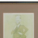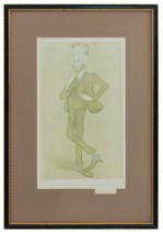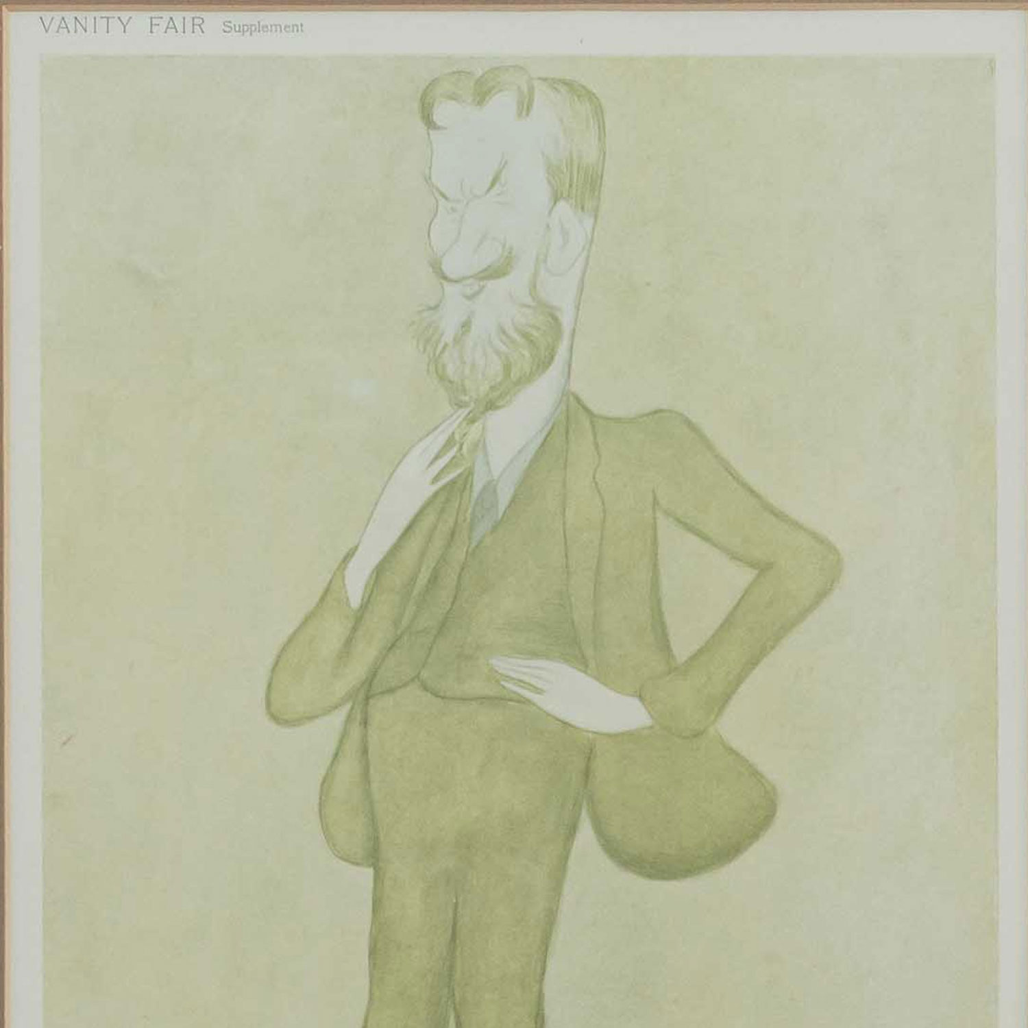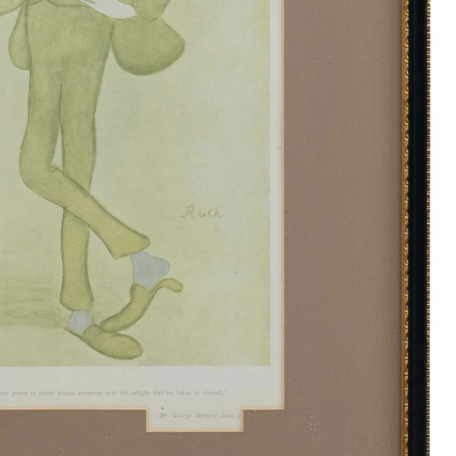 English lithograph caricature of George Bernard Shaw wearing a suit in a black & gilt wood frame with brown matting (Ruth for VANITY FAIR, ca. 1905) (Similar to: JOH6218)