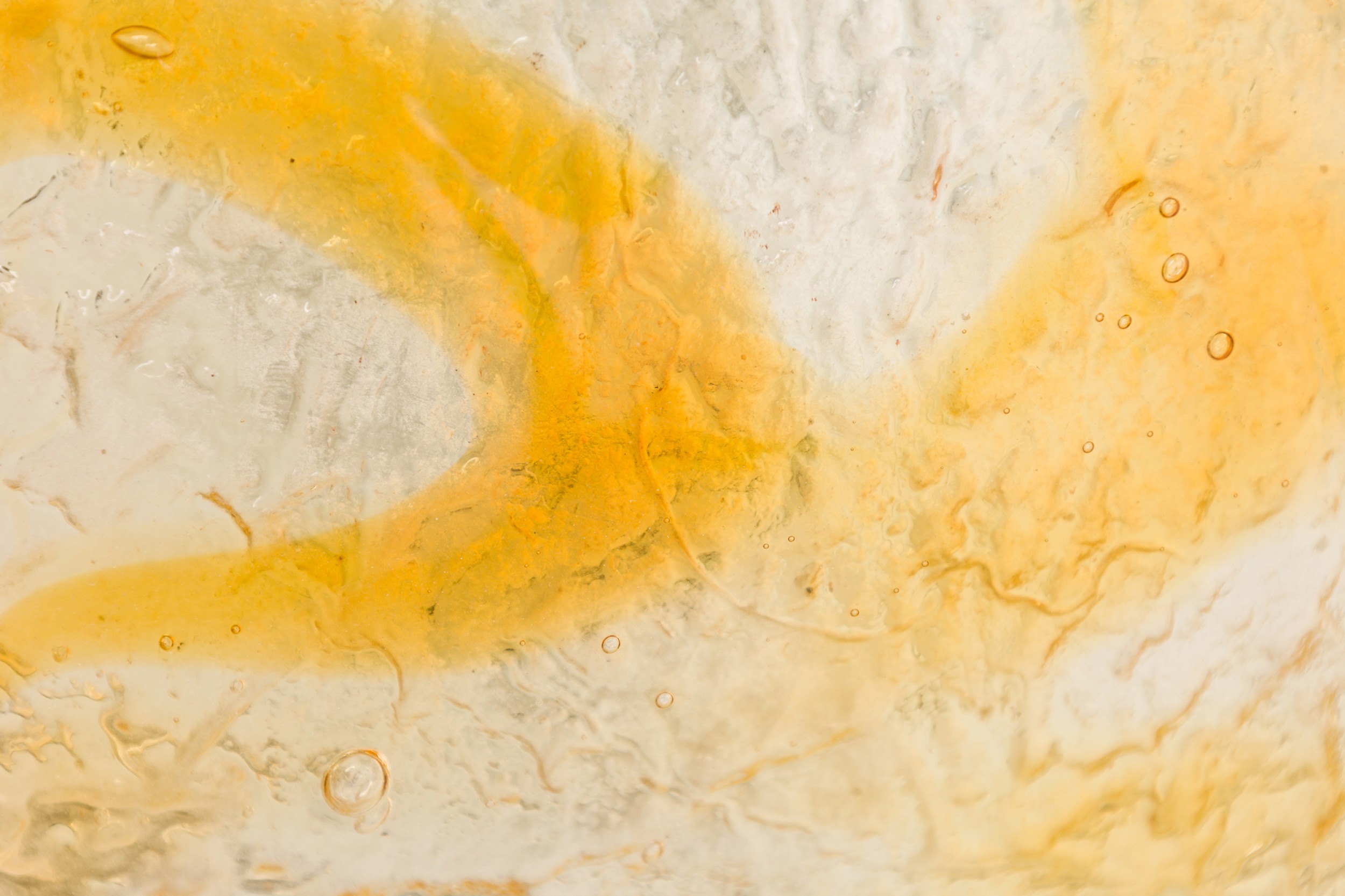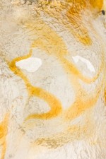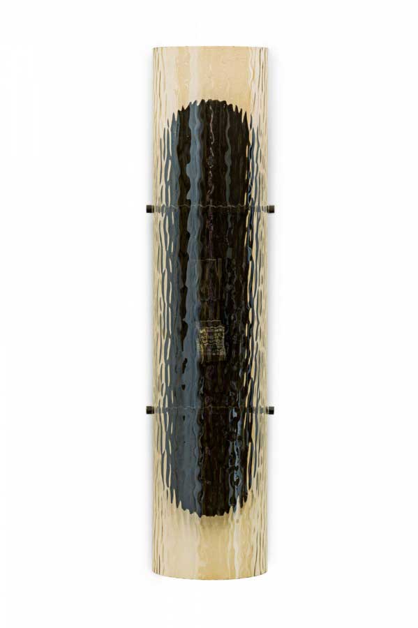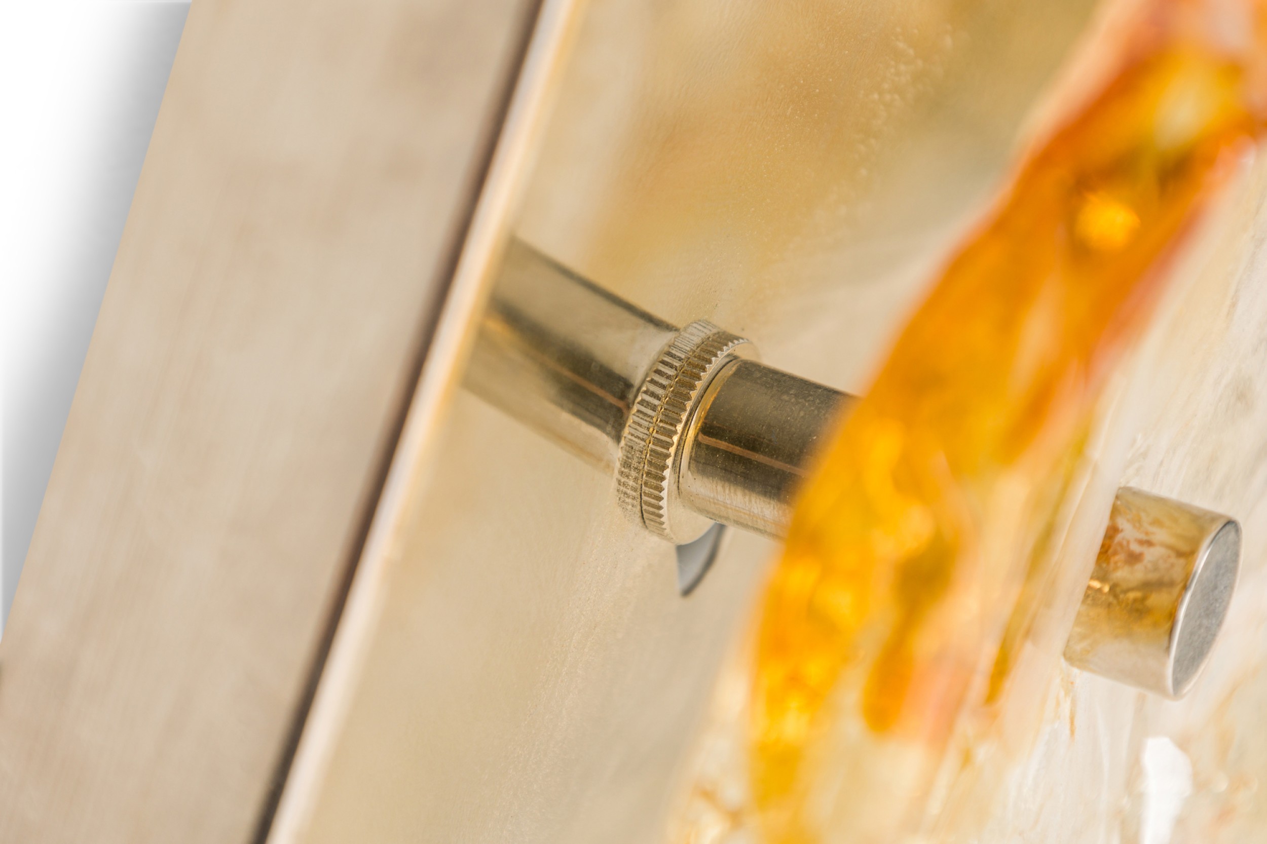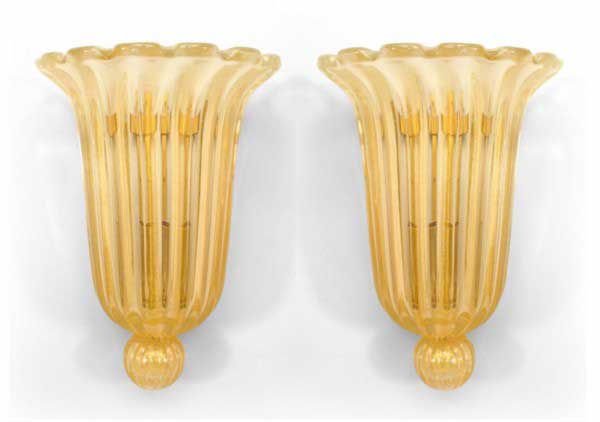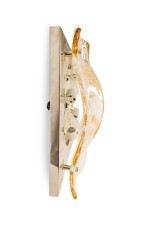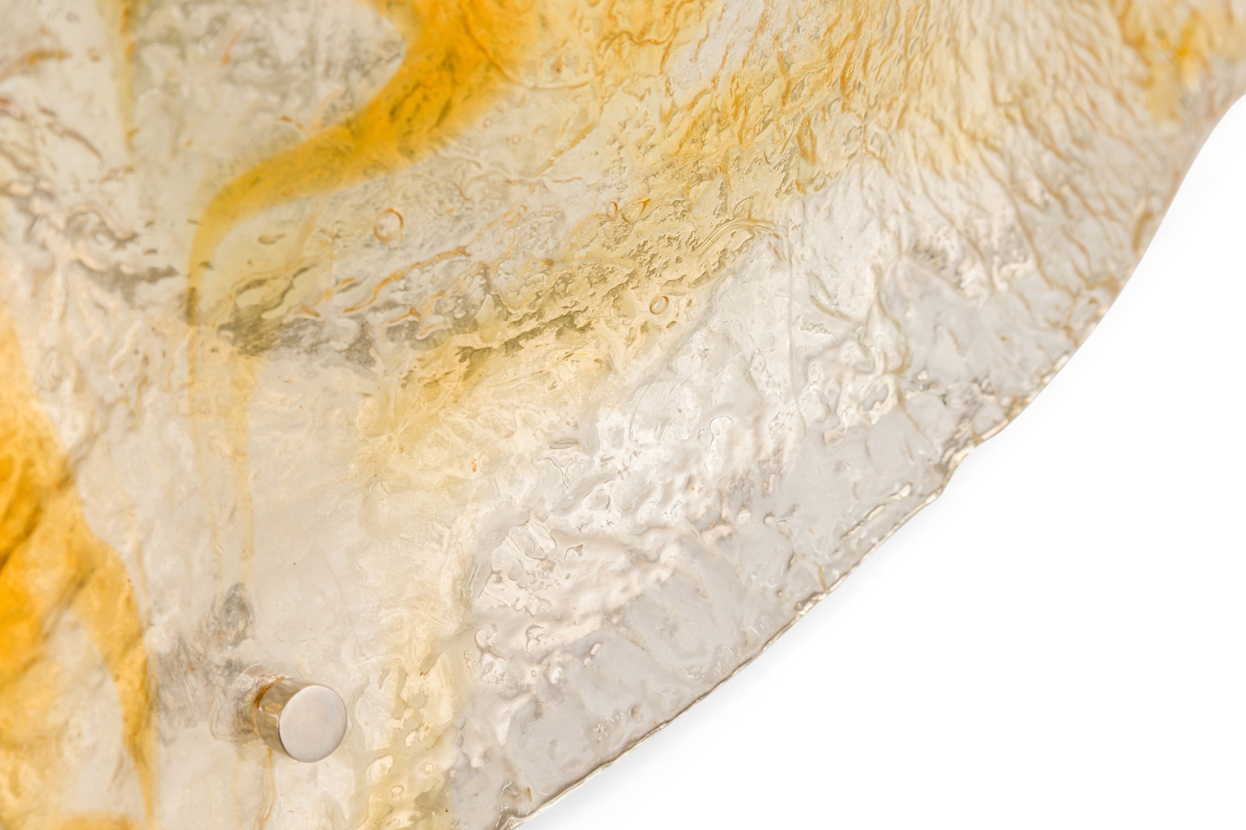 Pair of Contemporary textured clear and amber glass sconces with a half-round freeform design