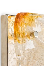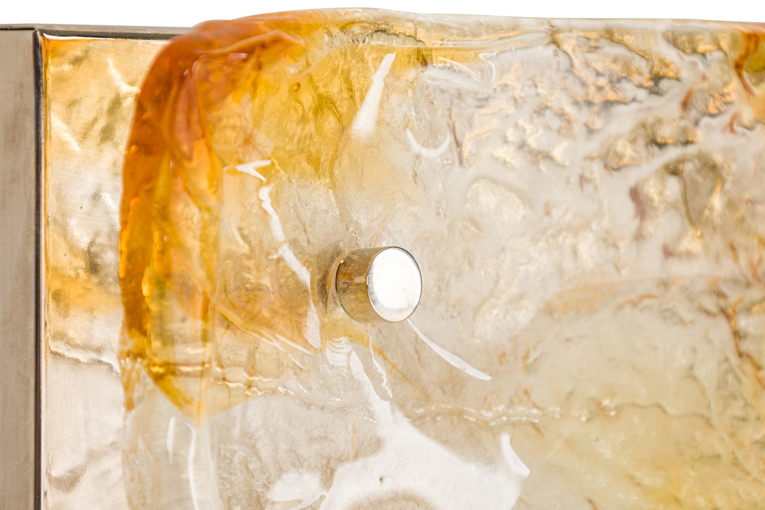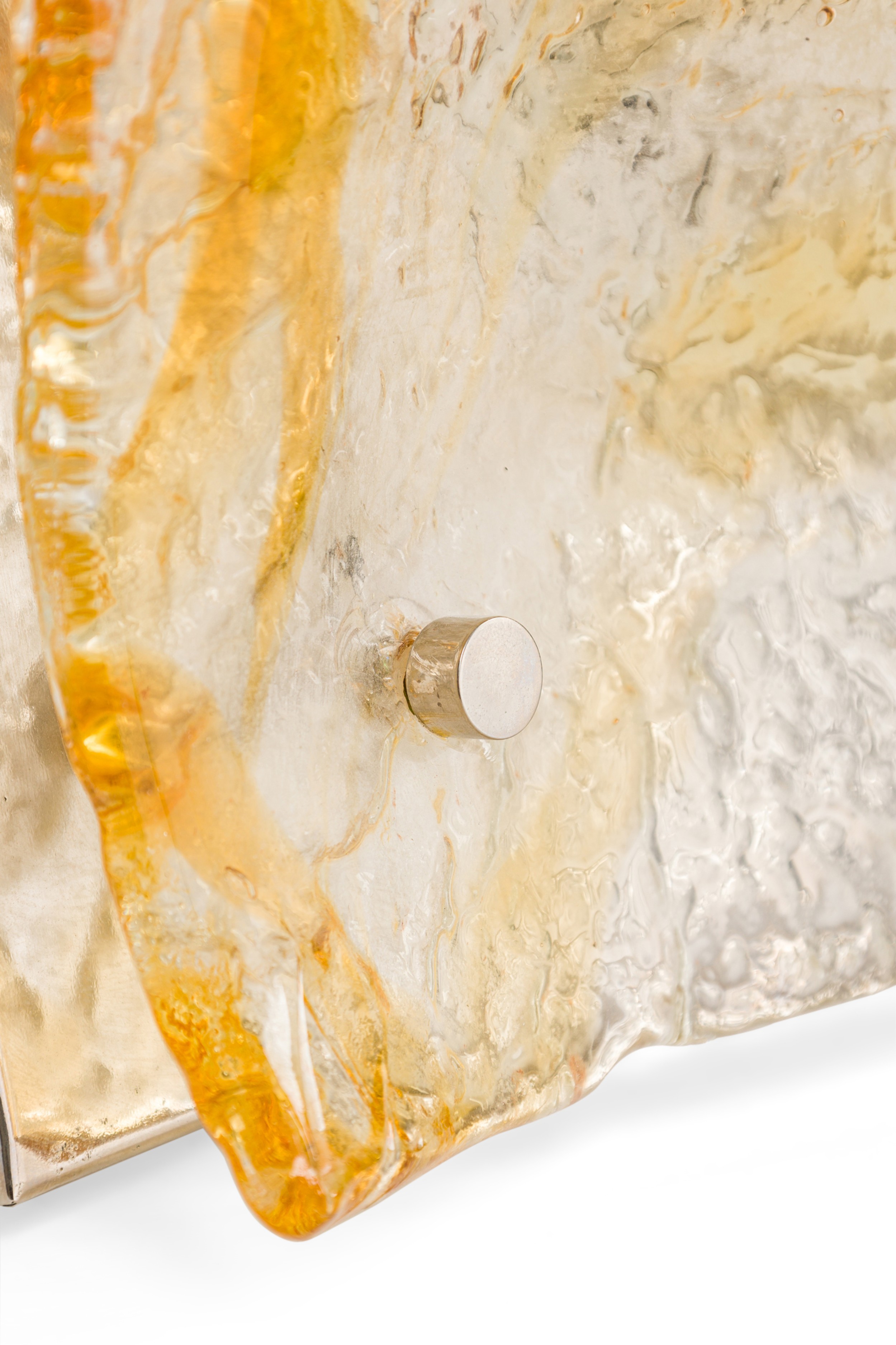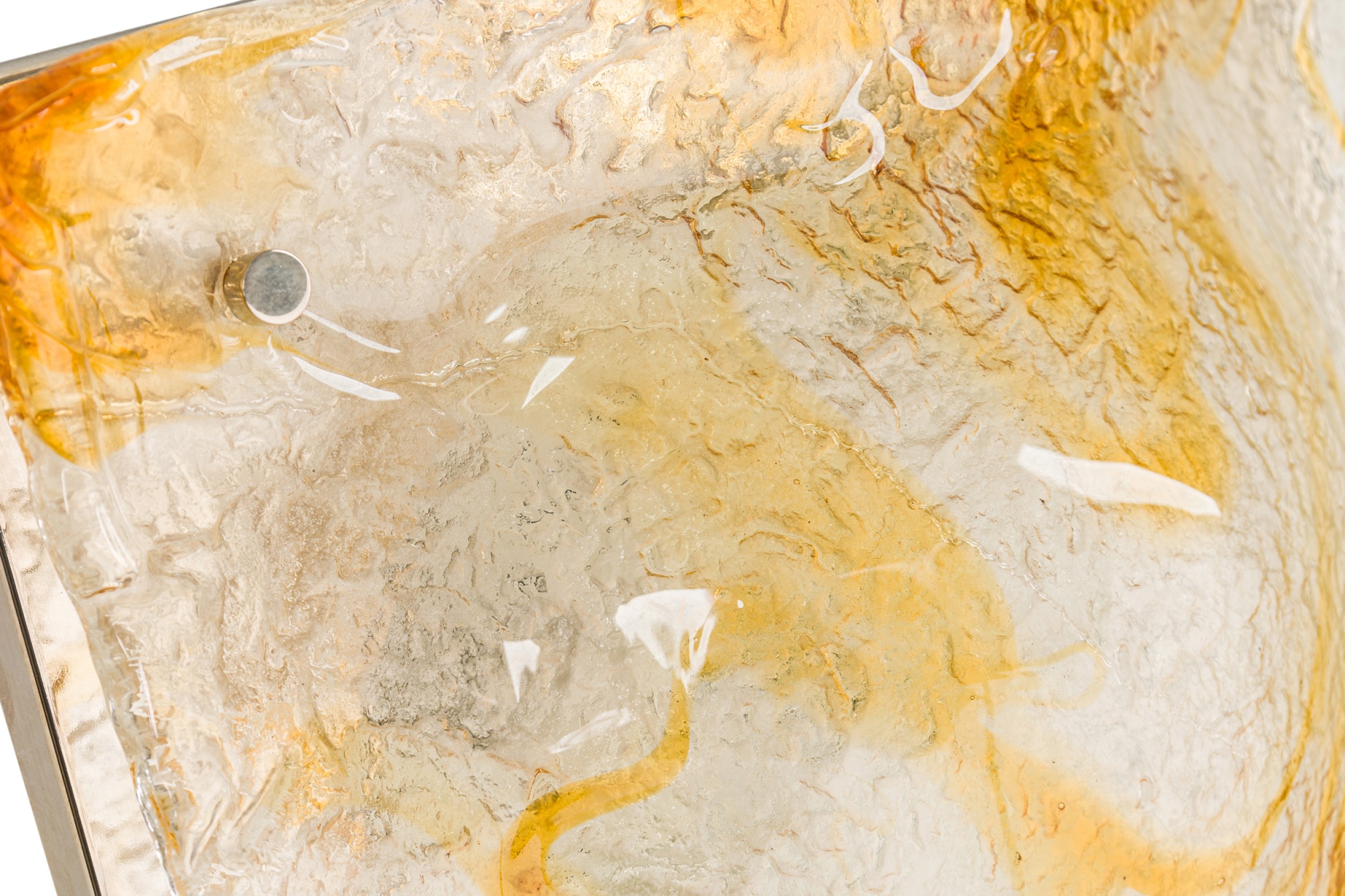PAIR of Contemporary (possibly Scandinavian) large textured clear and amber glass sconces with a square freeform design (PRICED AS PAIR)