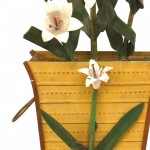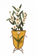 PAIR of American Art Moderne (1940/ 50's) painted tole basket with handles holding a spray of white lilies.