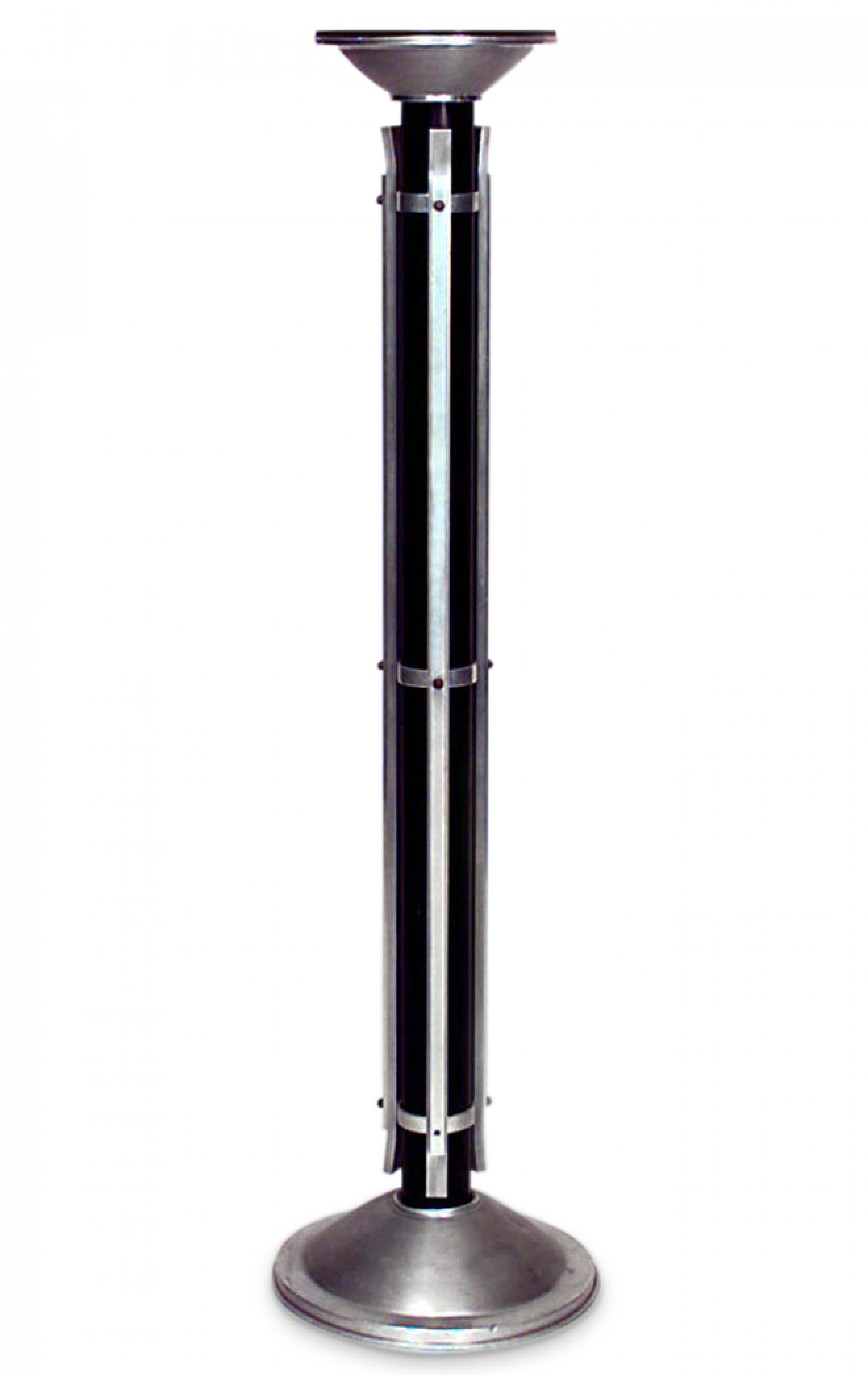 PAIR of American MI-Century (1930-40s) chrome trimmed and ebonized pedestals with round black lacquered tops.