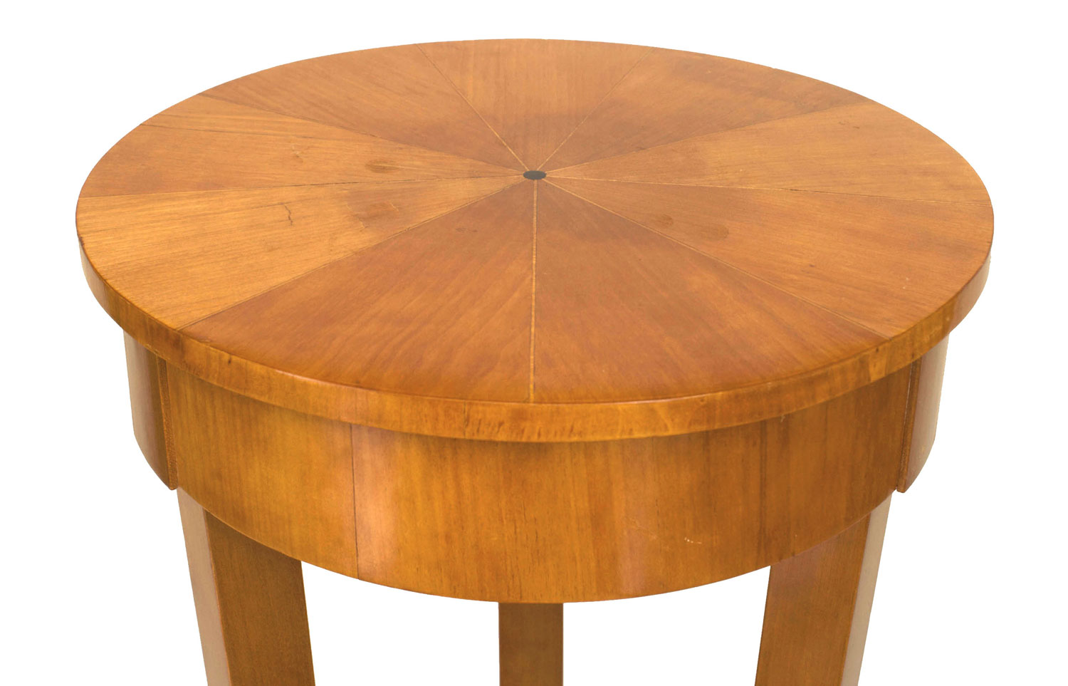 Style: Biedermeier Materials & Techniques: Inlaid, maple Category: Tables, Pedestals/Display Condition: Visible water damage on surfaces. Base has some wear. Good; Wear consistent with age and use