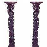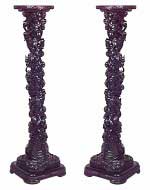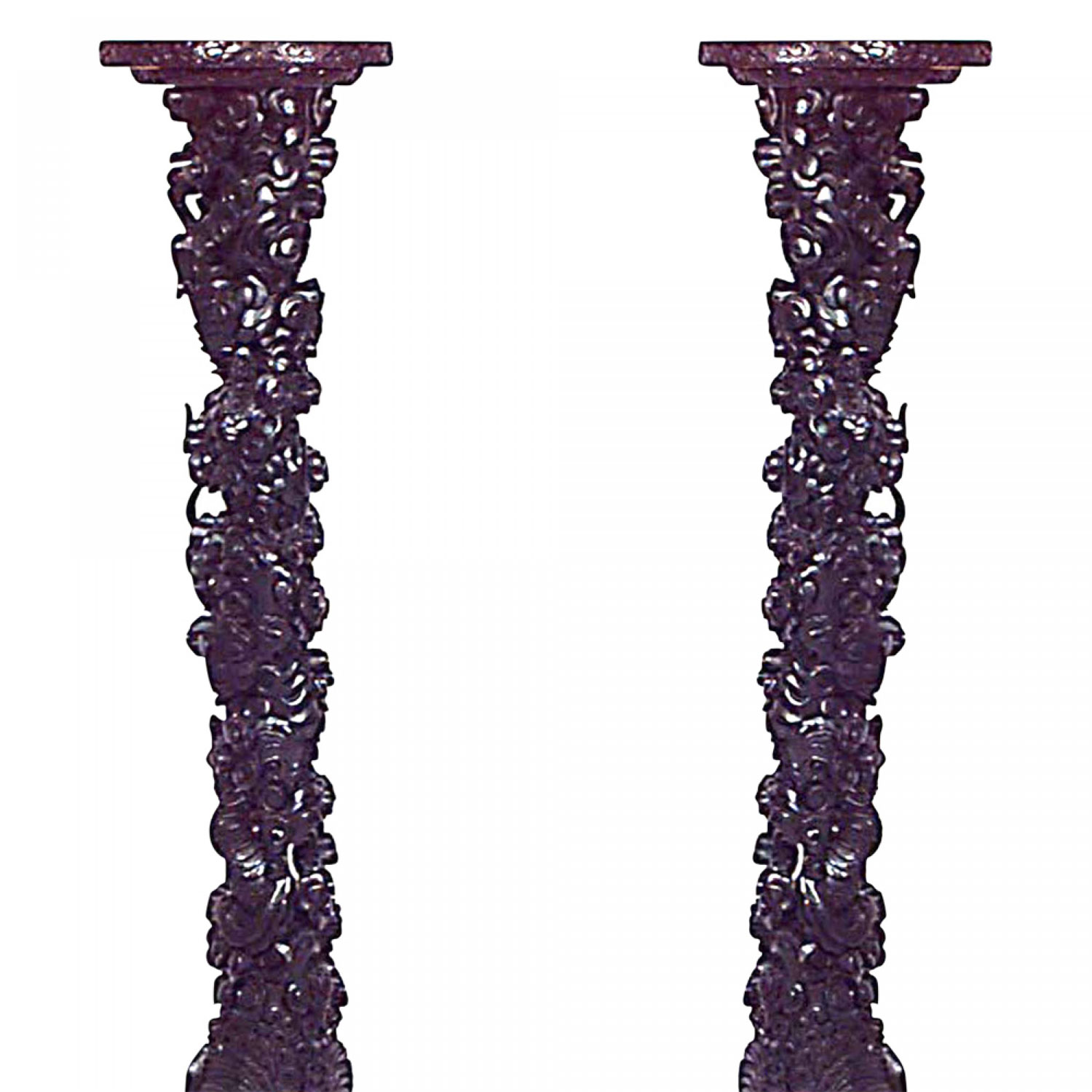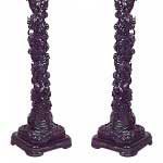 PAIR of Asian Chinese style (19th Cent) ebonized carved scroll design pedestals with square base and round top..