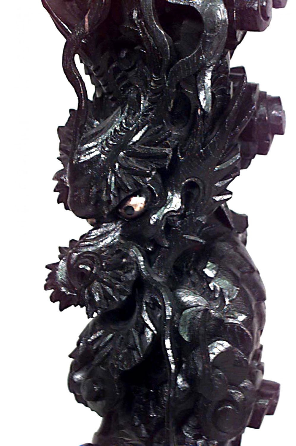 Style: Asian Materials & Techniques: Carved, ebonized Category: Tables, Pedestals/Display Good; Wear consistent with age and use