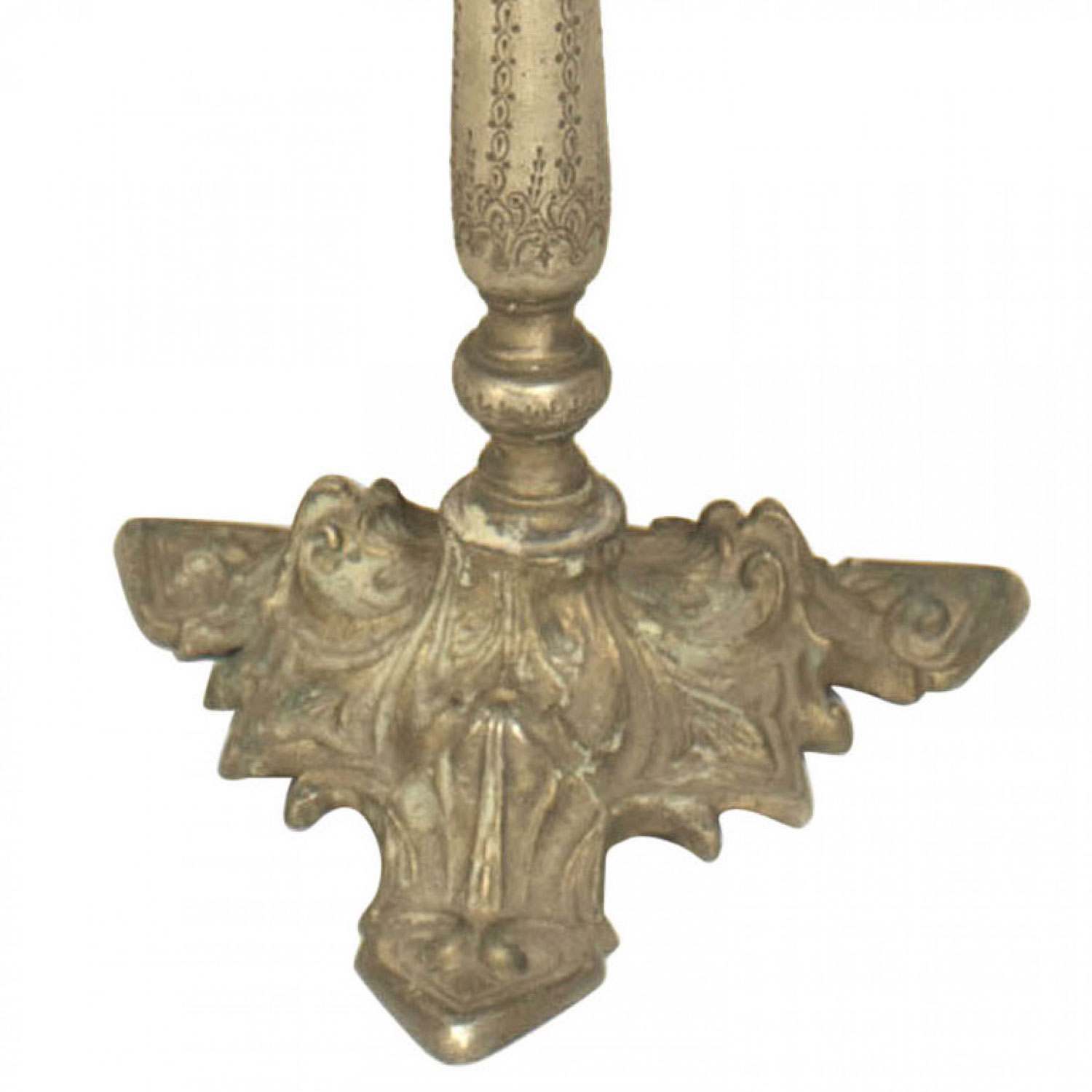 PAIR of Middle Eastern Egyptian-style (Late 19th Century) compotes with a silvered etched round top supported on a bronze pedestal resting on a triangular base. (PRICED AS PAIR).