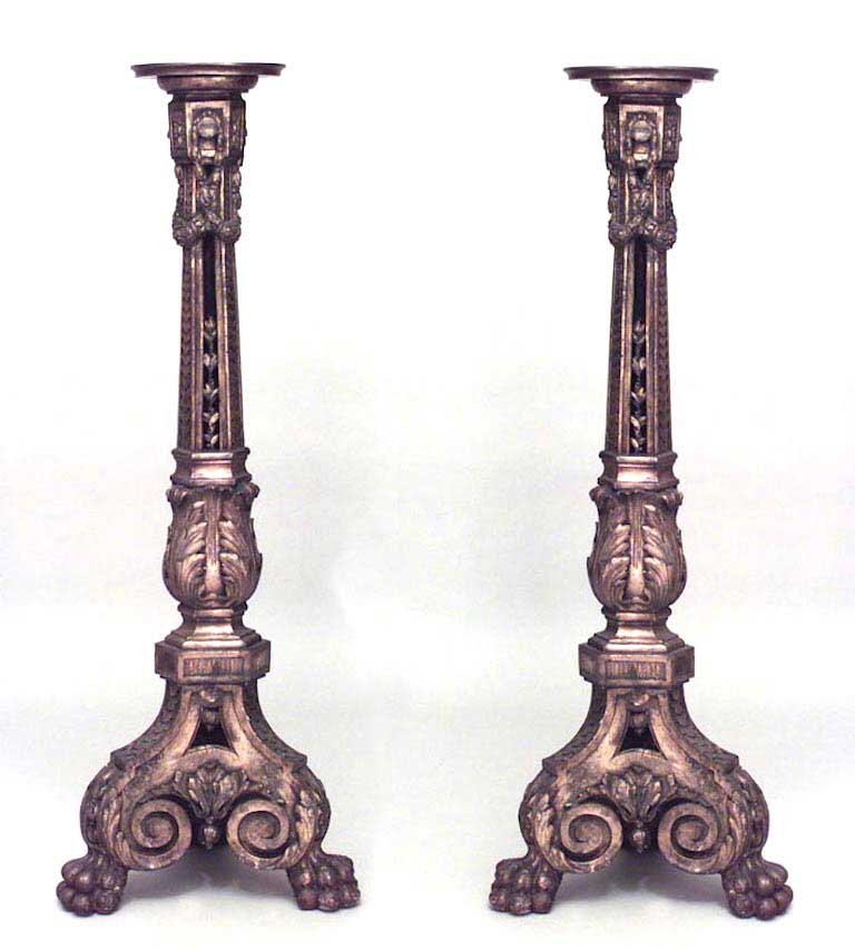 PAIR of French Louis XVI style (19th Cent) carved gilt pedestals with 3 claw feet.