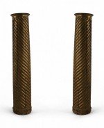 PAIR of French Louis XVI gilt swirl column pedestals.