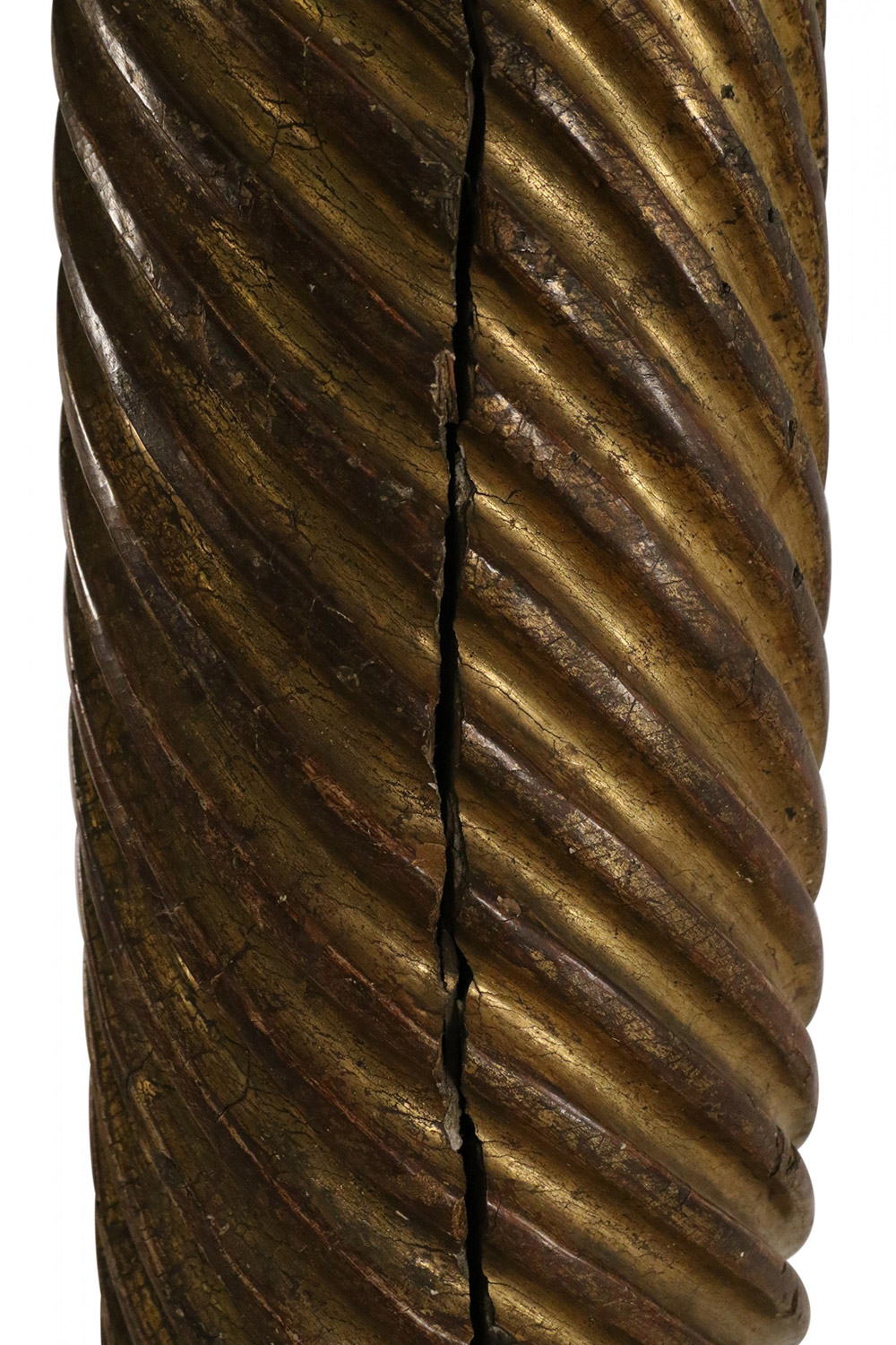 PAIR of French Louis XVI gilt swirl column pedestals..
