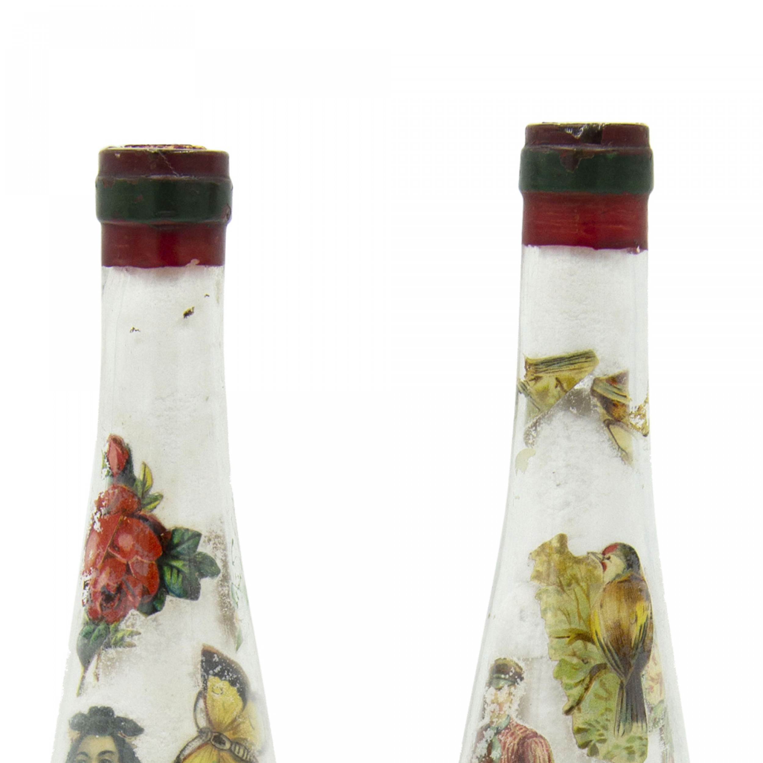 Pair of French Victorian Decoupage Wine Bottles