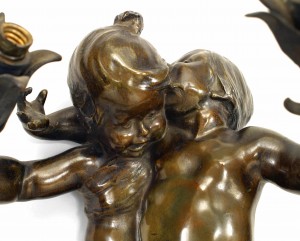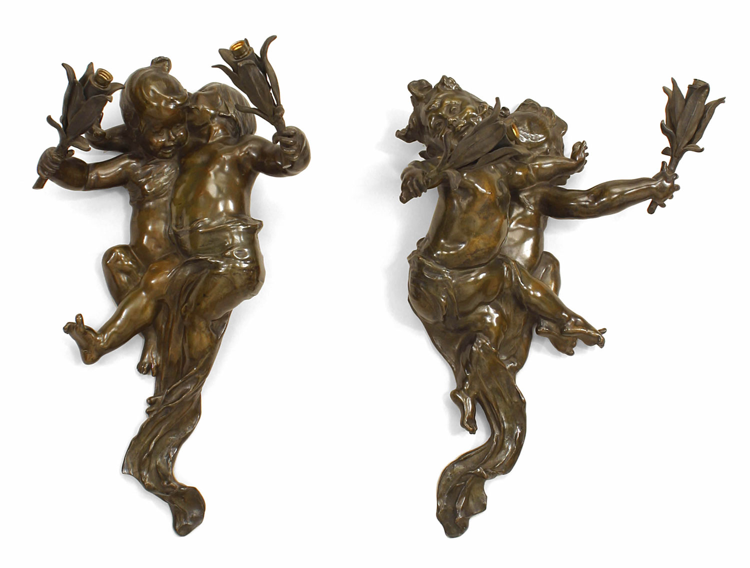 Pair of Joseph Cheret French Victorian Patinated Bronze Cherub Wall Sconces