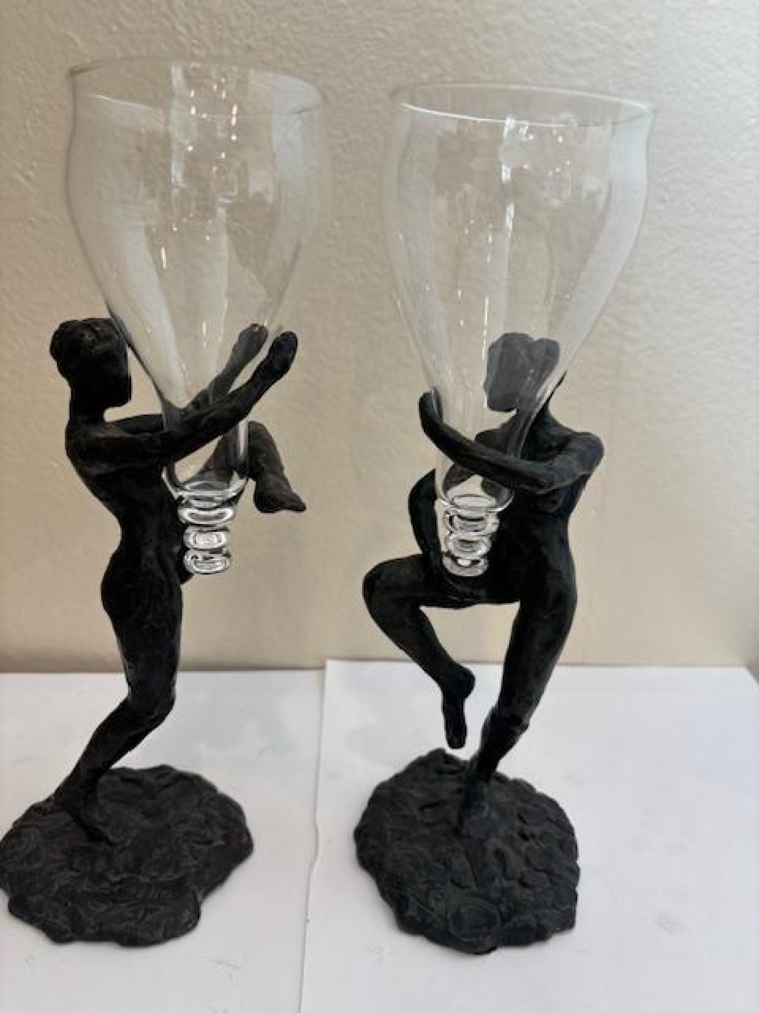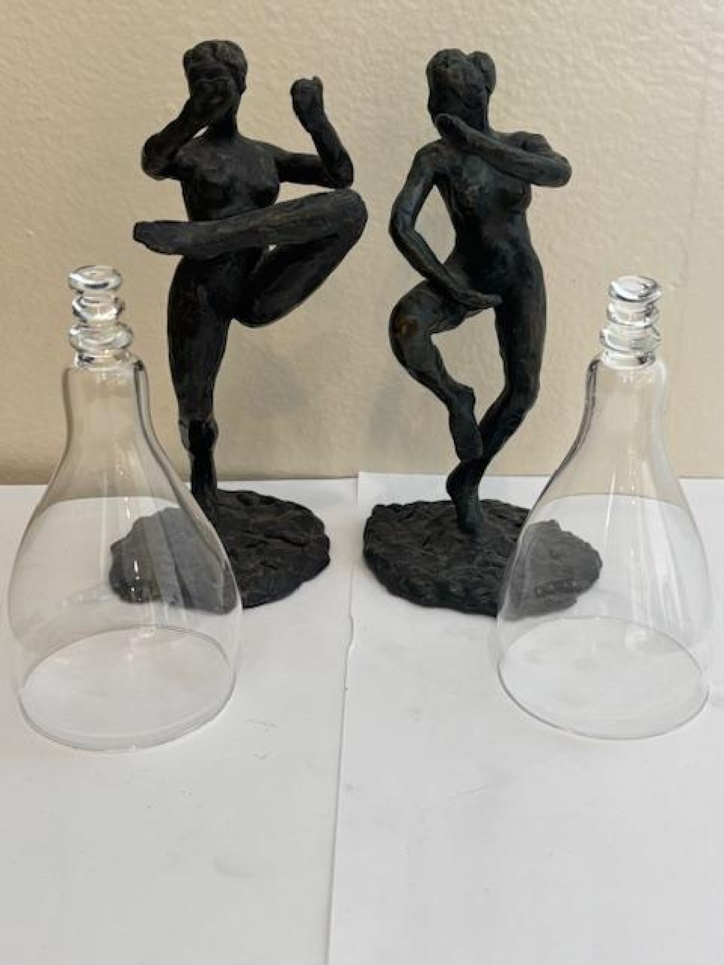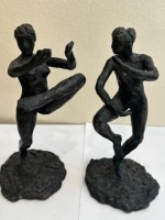 PAIR of French Post-War Design 1980/90s bronze stylized female figures (signed LaROCHE)