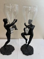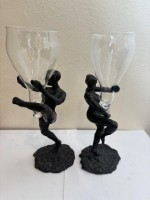PAIR of French Post-War Design 1980/90s bronze stylized female figures (signed LaROCHE).