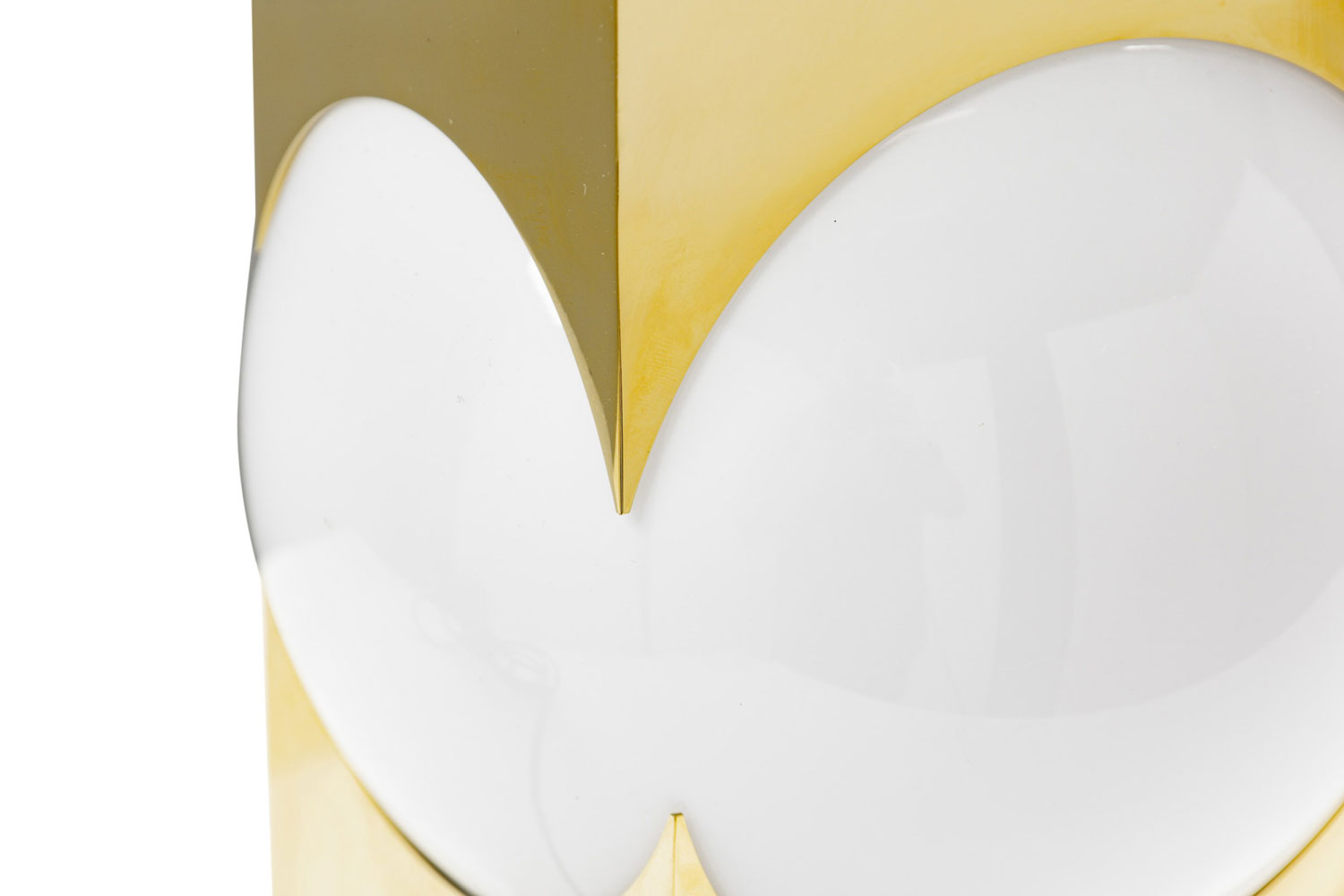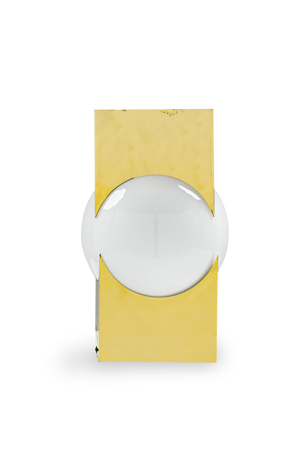 Pair of Mid-century Style Rectangular Brass Table Lamps with White Globe