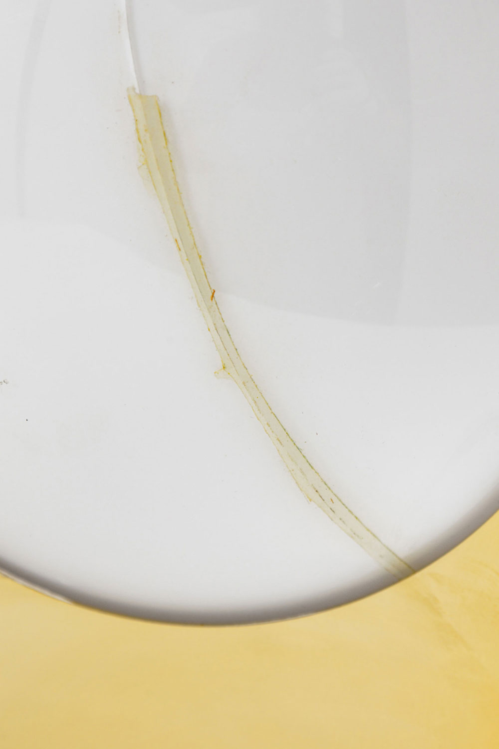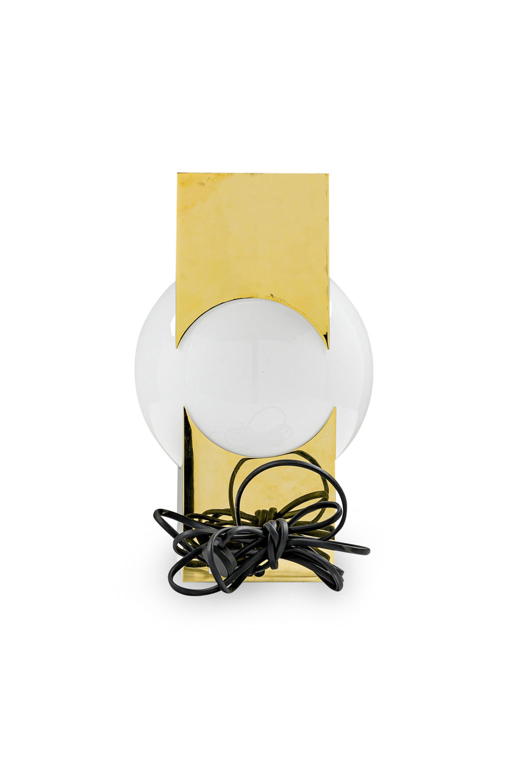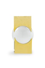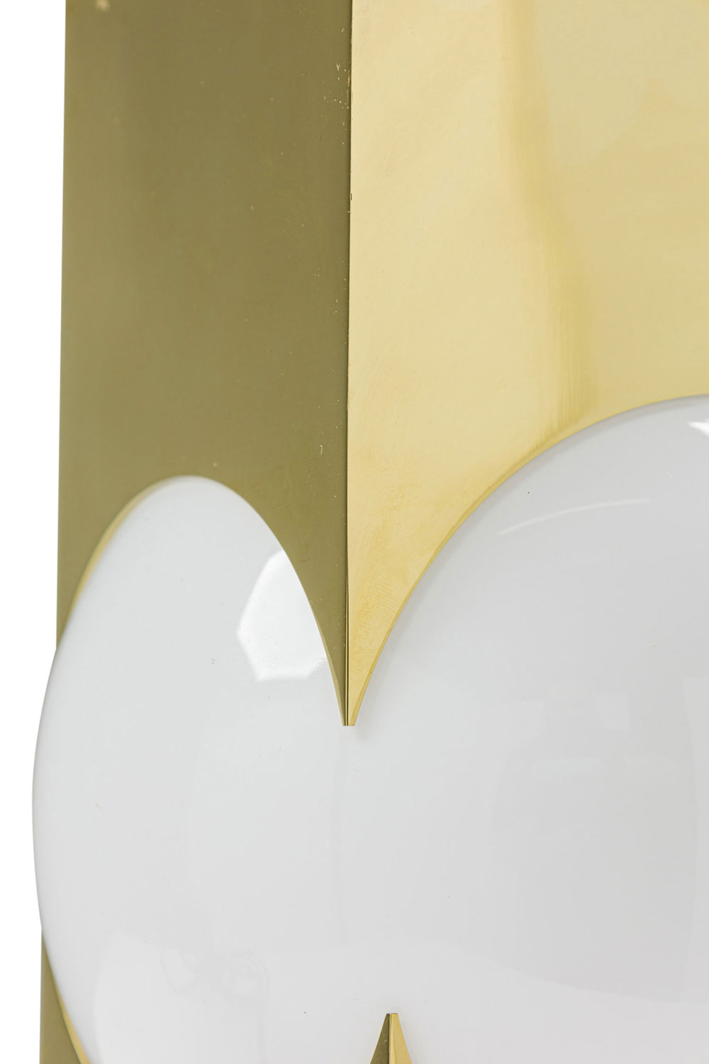 Style: Mid-Century Materials & Techniques: Brass, glass Category: Lighting Condition: Crack in glass on one fixture.