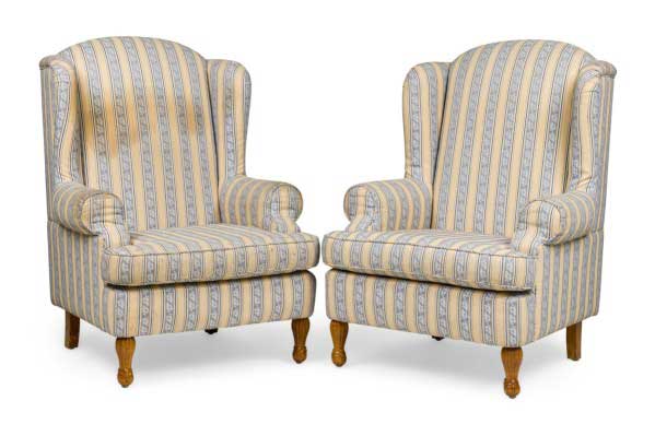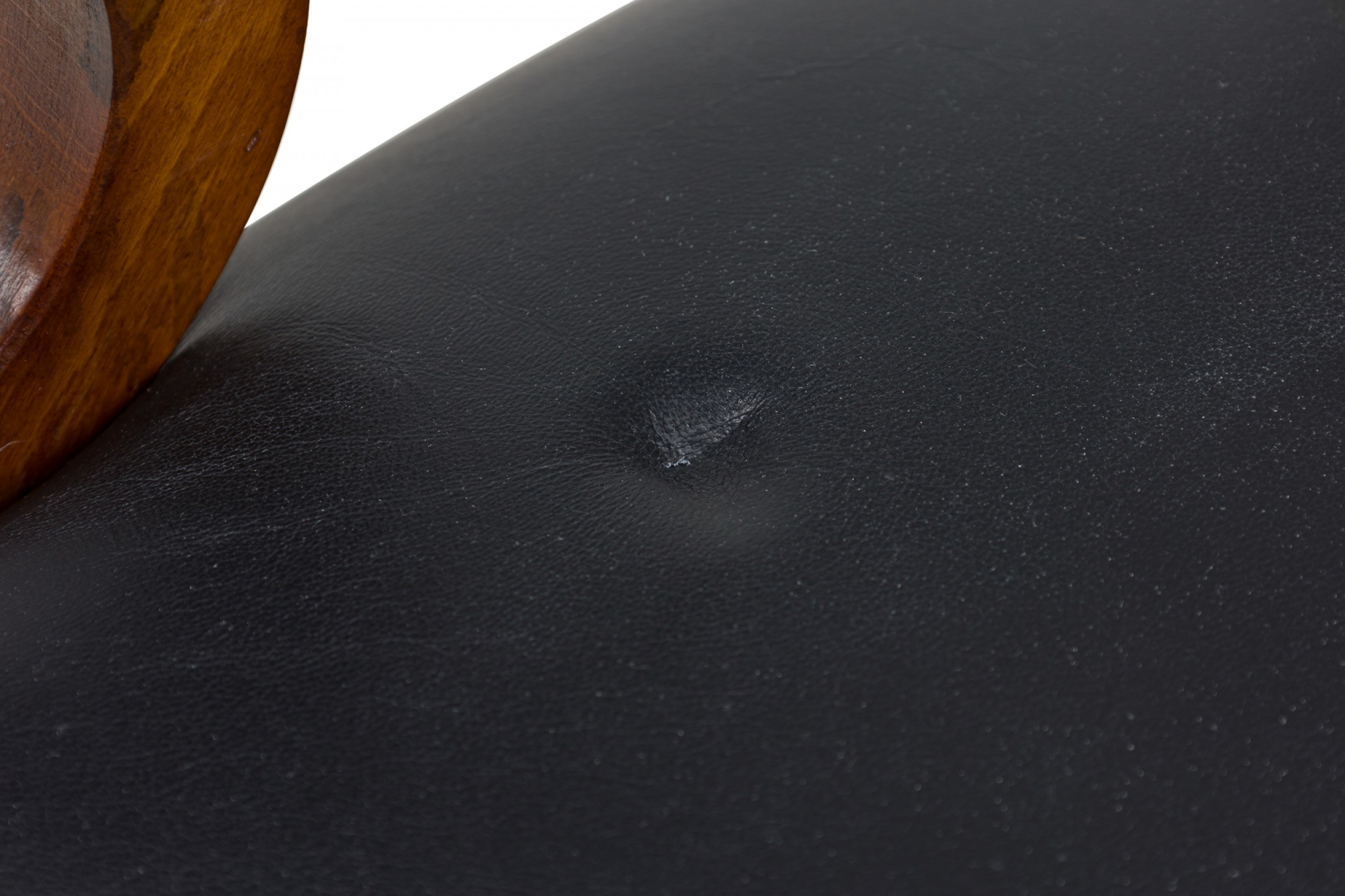 Style: English, Italian Materials & Techniques: Brass, leather, metal, wood Category: Seating Condition: Paint blemish on one seat, minor pitting to wooden frames. Good; Wear consistent with age and use