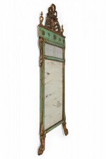 Style: Italian Materials & Techniques: Gilt / giltwood, mirror, painted, wood Category: Mirrors Condition: Wear from age & use. One mirror has a leaf break wood restoration. Good; Minor losses