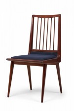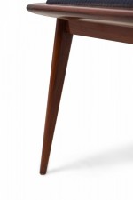 Style: Continental, Contemporary/Post-War Design, Mid-Century Materials & Techniques: Fabric, textured, upholstered, wood Category: Seating Condition: Slight upholstery wear. Good; Wear consistent with age and use