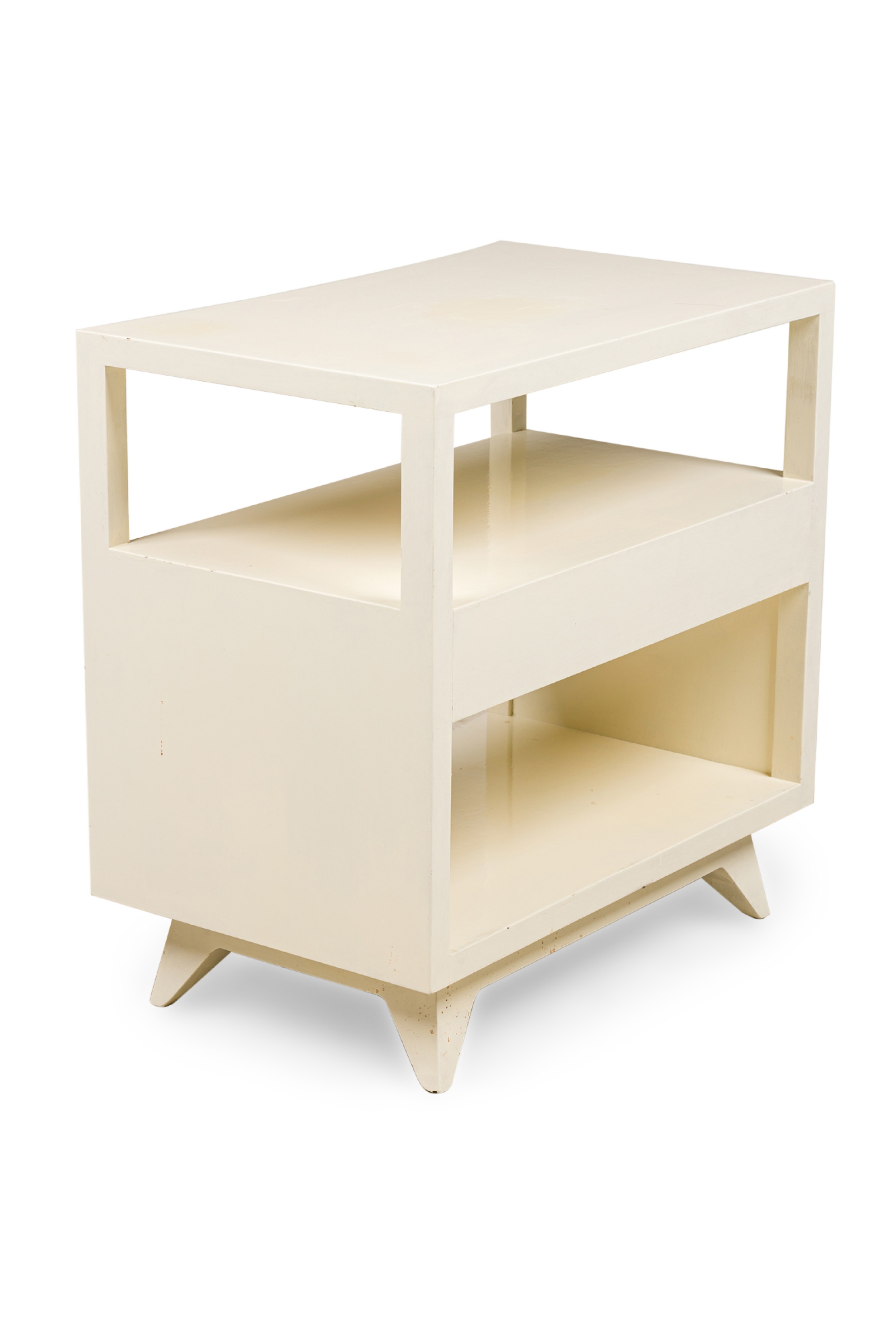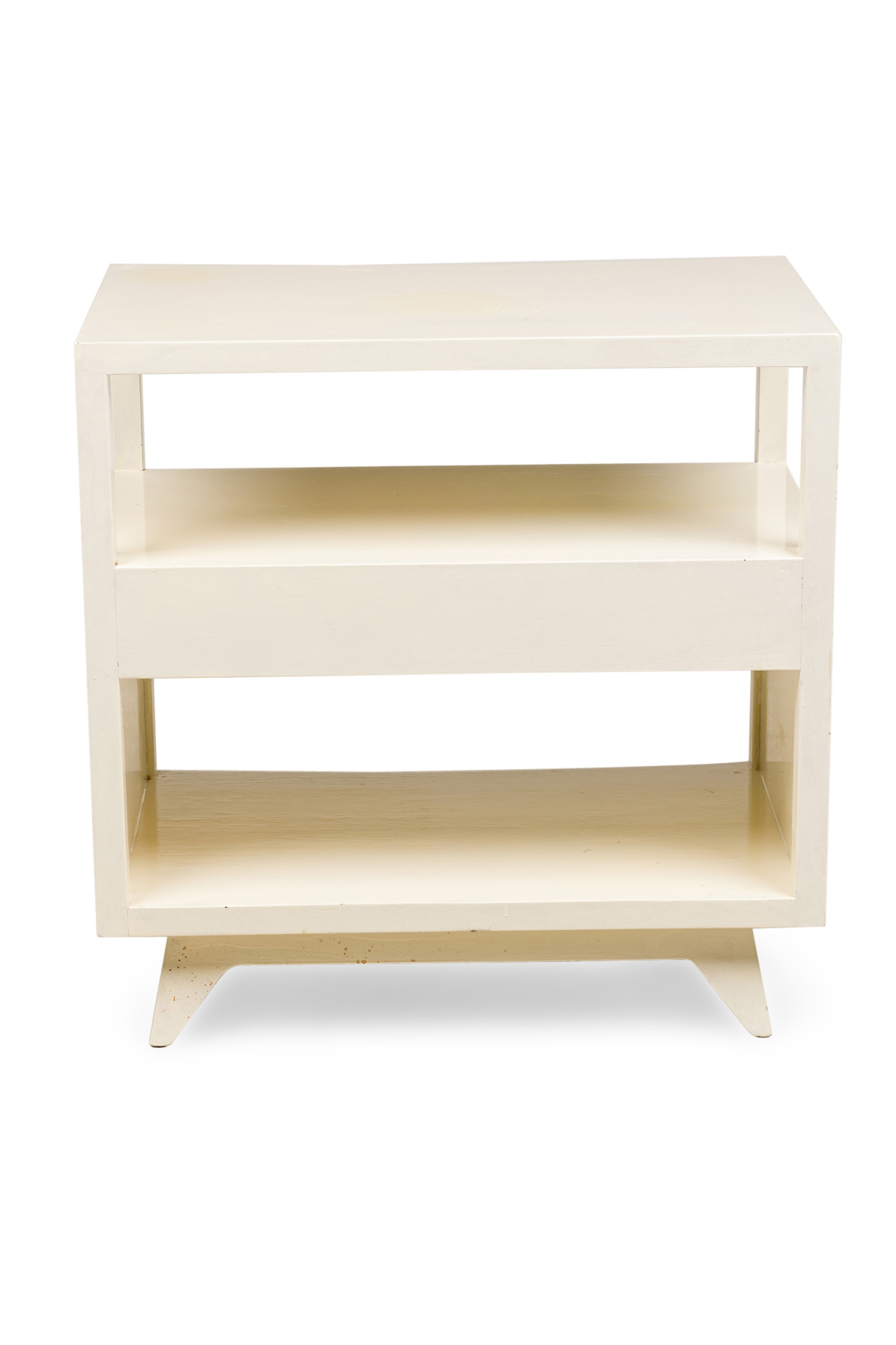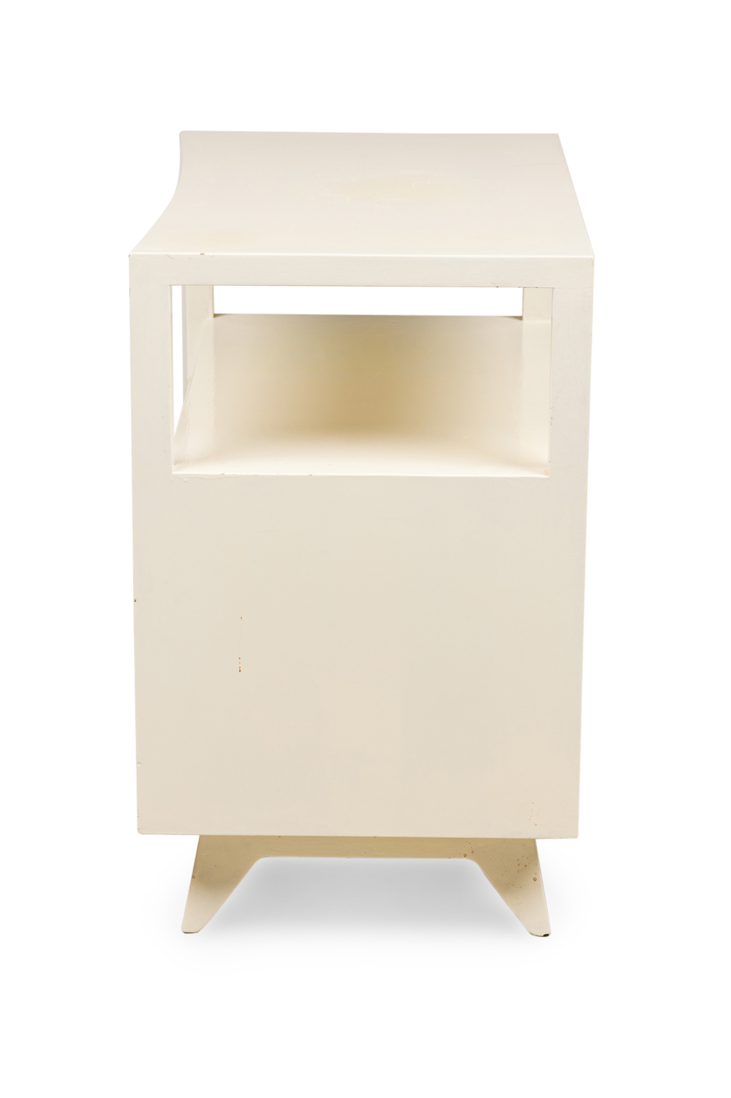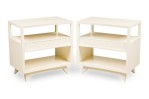 Pair of American Contemporary White Two-Tier Concave End Table
