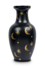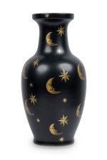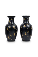 PAIR of Contemporary chinoiserie style black vases with painted gold stars and crescent shaped moons (PRICED AS PAIR).