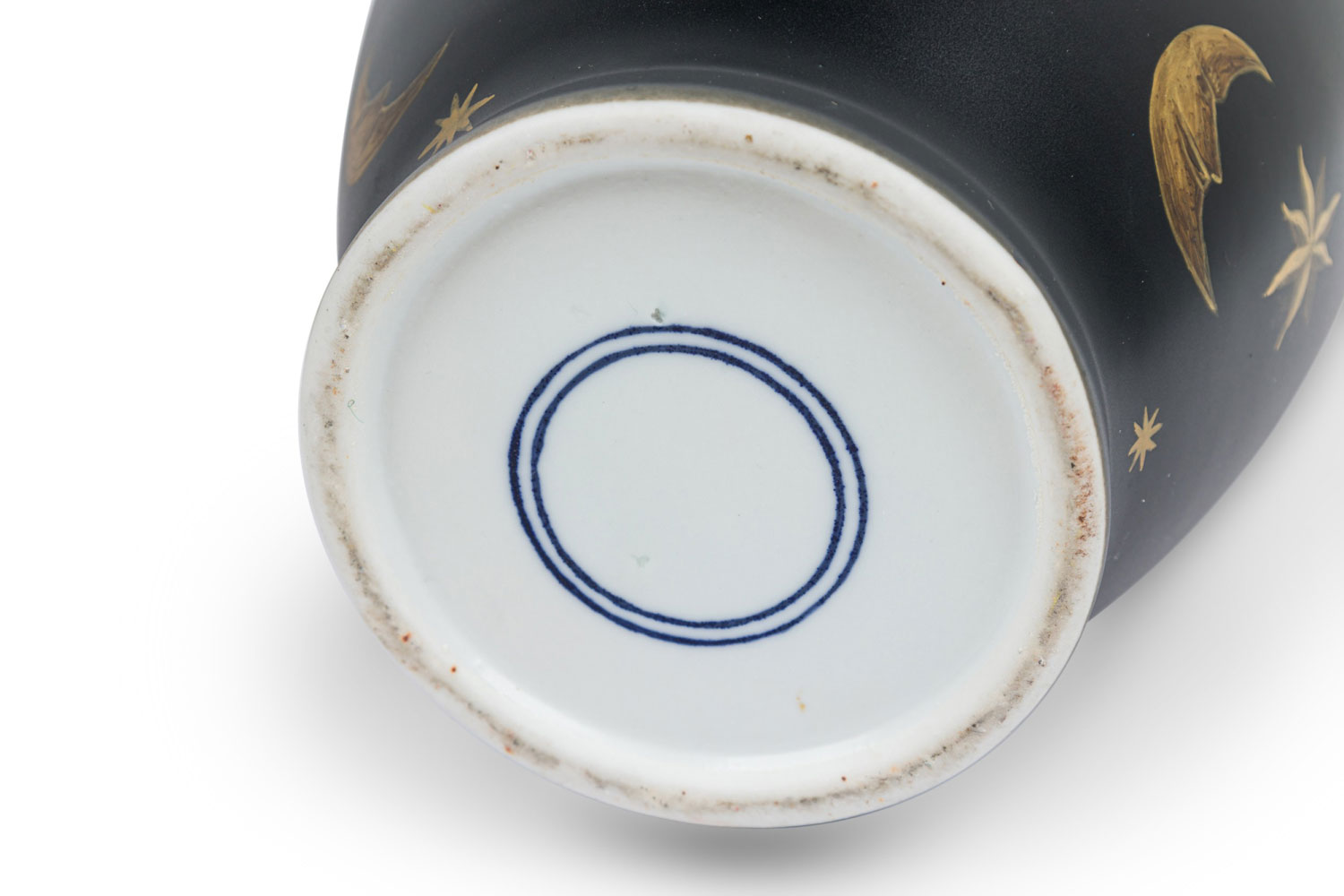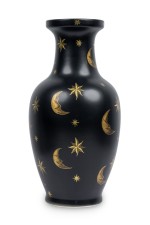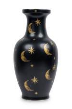 PAIR of Contemporary chinoiserie style black vases with painted gold stars and crescent shaped moons (PRICED AS PAIR)