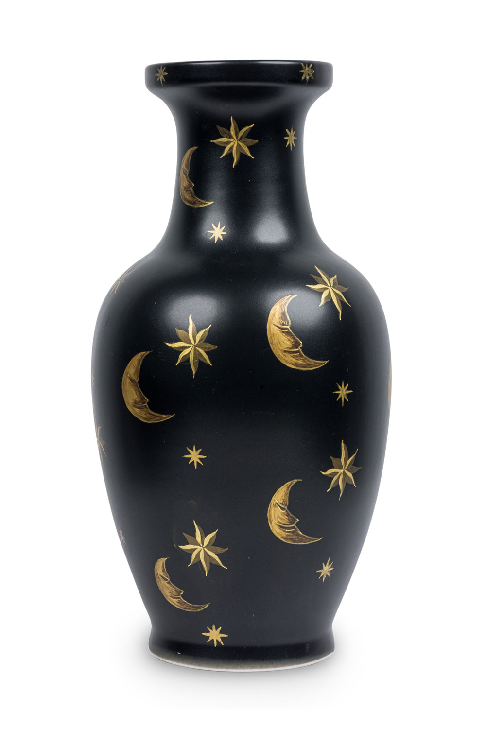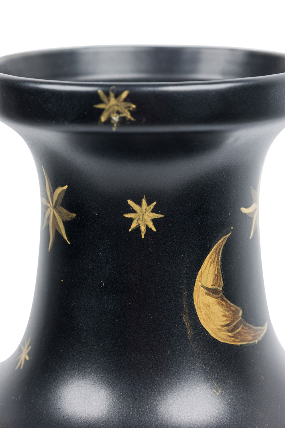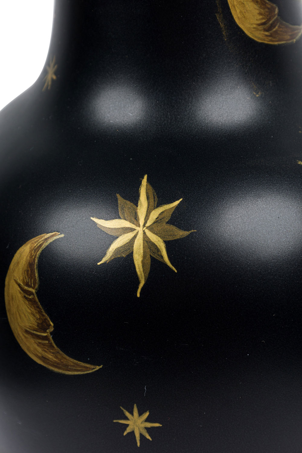 Pair of Black Hand-Painted Gold Star and Moon Vases