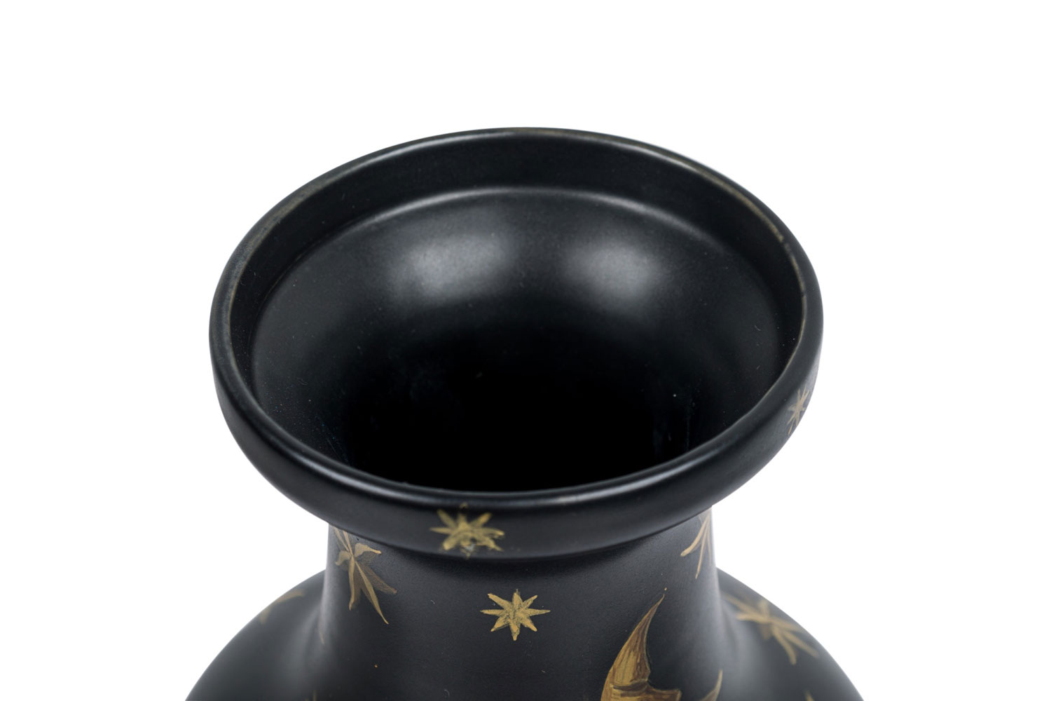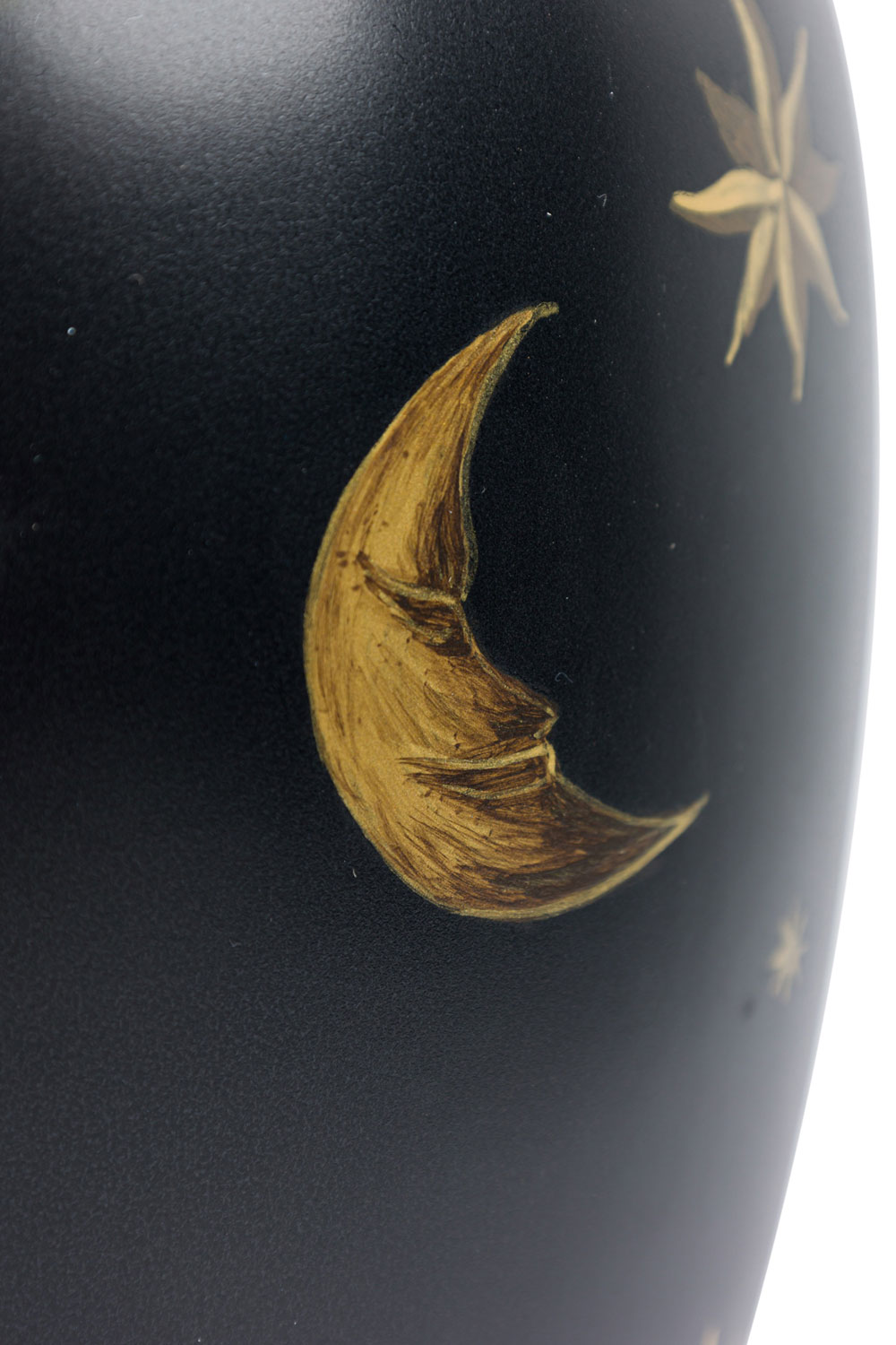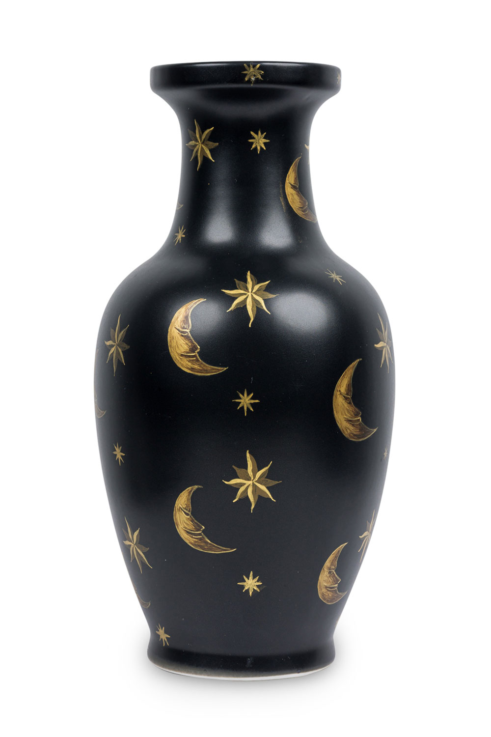 Pair of Black Hand-Painted Gold Star and Moon Vases