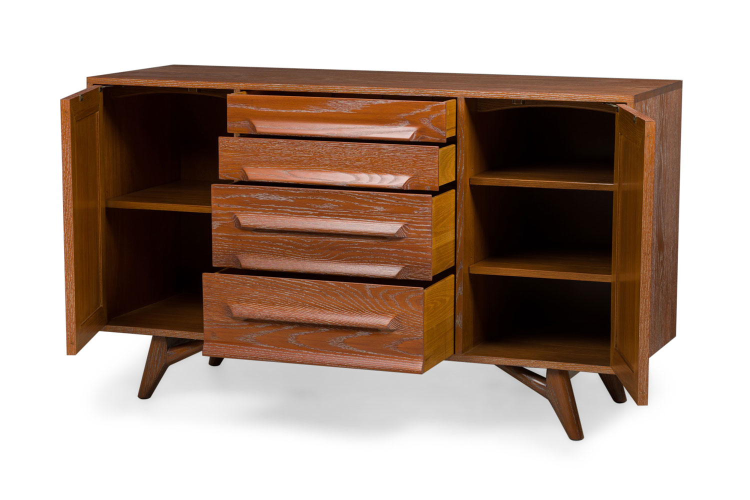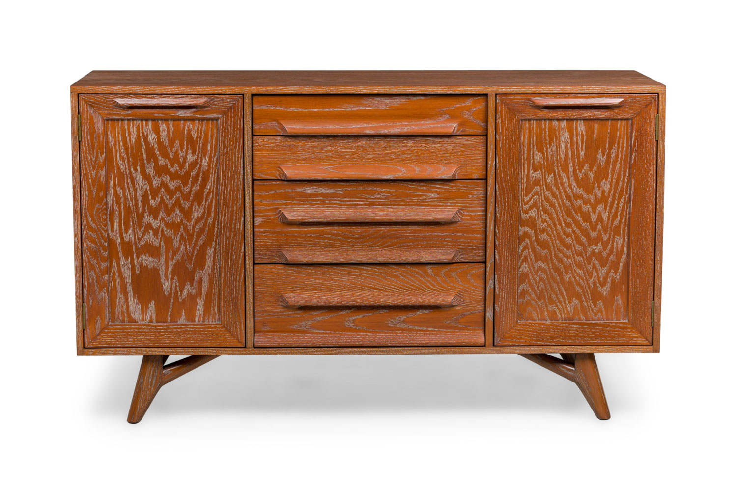 Pair of American Mid-Century Cerused Oak Four Drawer Credenza