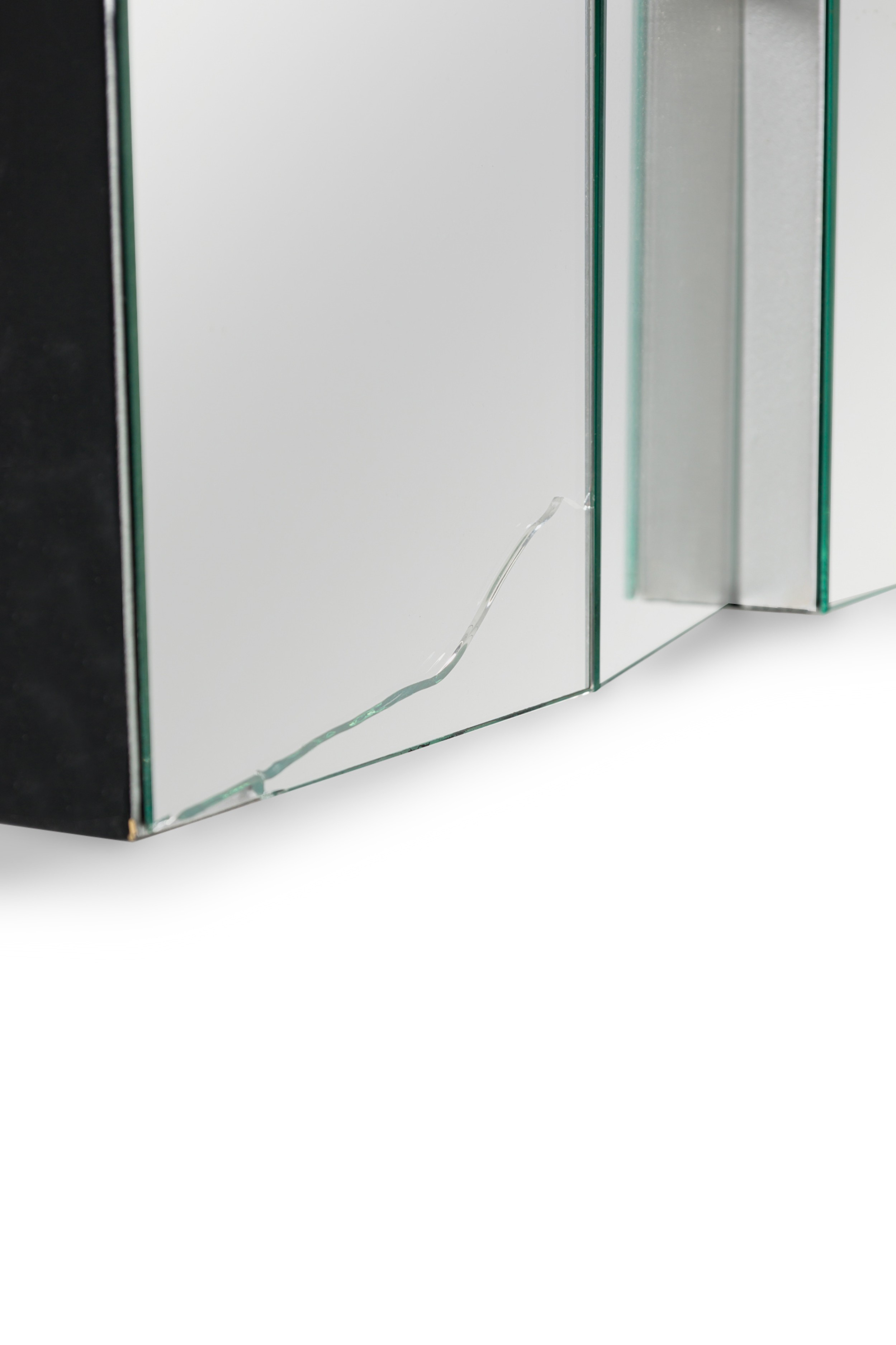 Style: Mid-Century Materials & Techniques: Glass Category: Mirrors Condition: One mirror has cracks in two of the mirrored panels in the bottom row. The other mirror has a small chip in the top right panel.