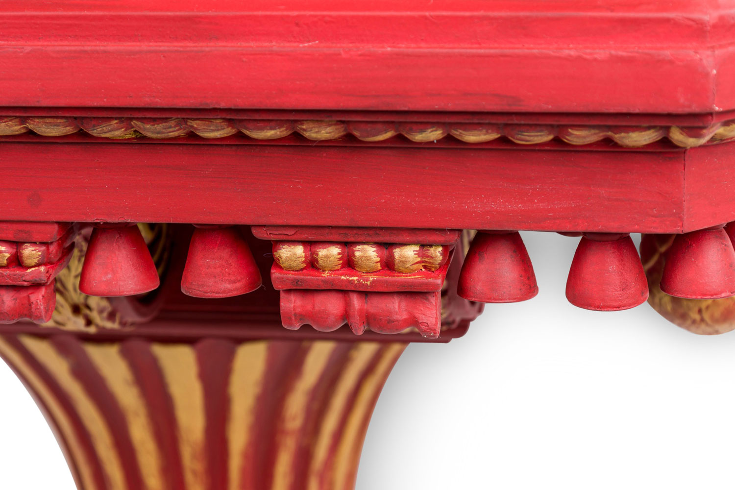 PAIR of American Mid-Century style red painted and gold trimmed carved wall shelf with a fluted design bottom (PRICED AS PAIR) AVAILABLE INDIVIDUALLY