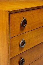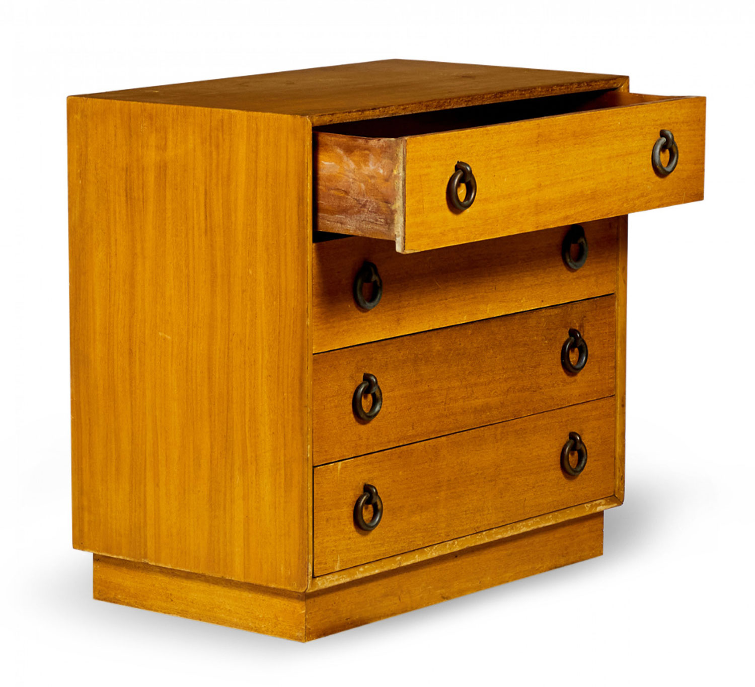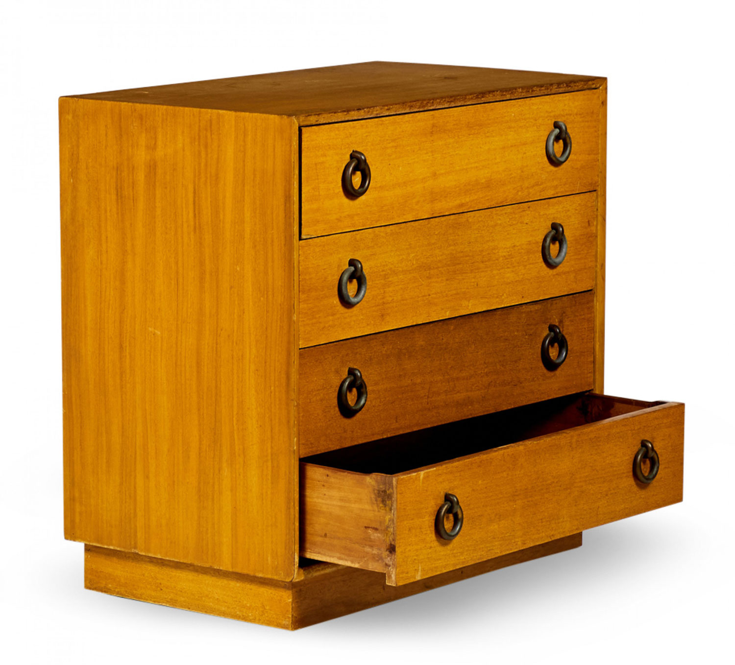 Pair of American Mid-Century Walnut and Brass Ring 4-Drawer Chest