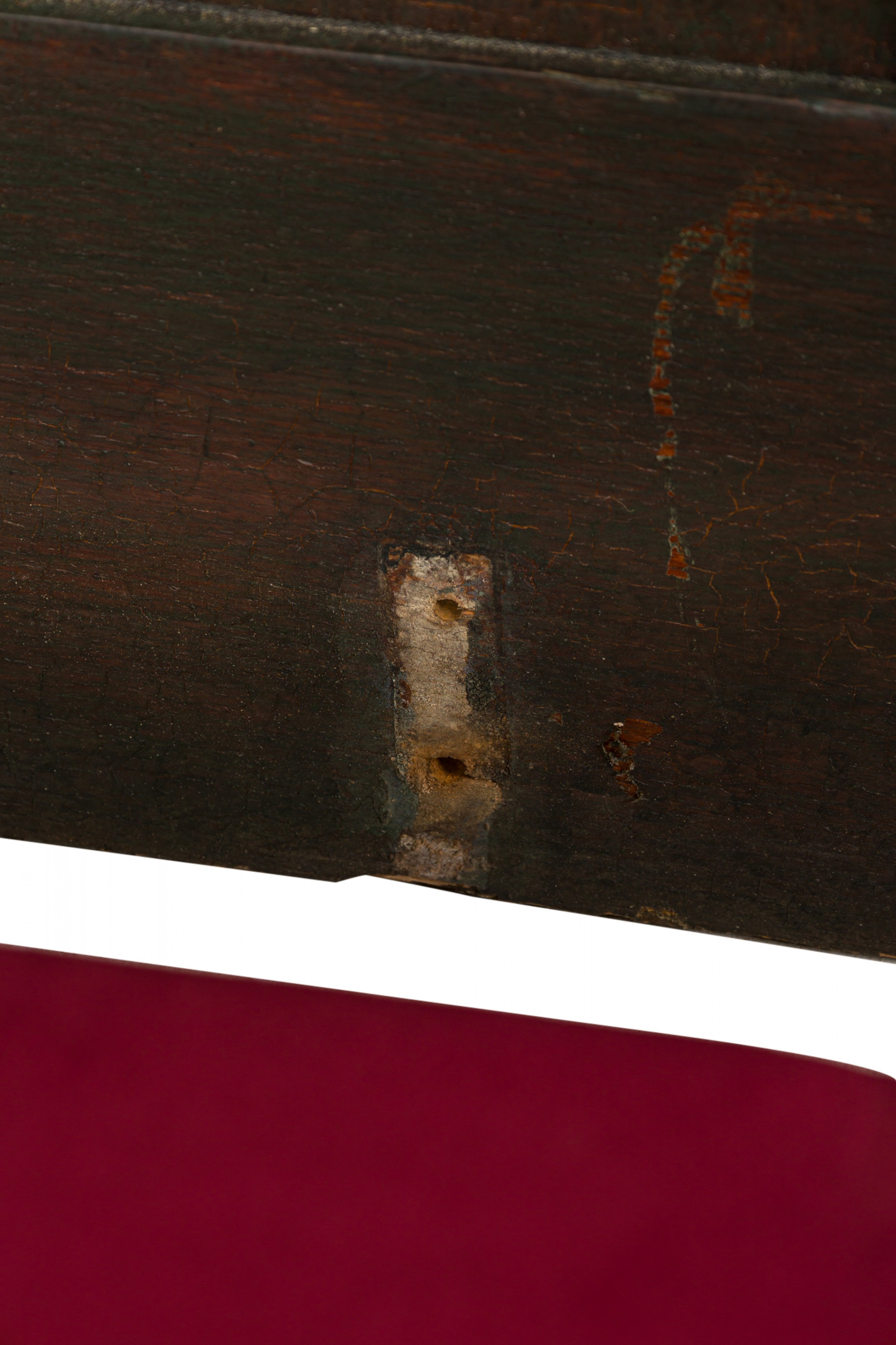 Style: American Materials & Techniques: Fabric, upholstered, wood Category: Accessories/Décor/Bric-a-Brac Condition: Wear and some losses Good; Wear consistent with age and use