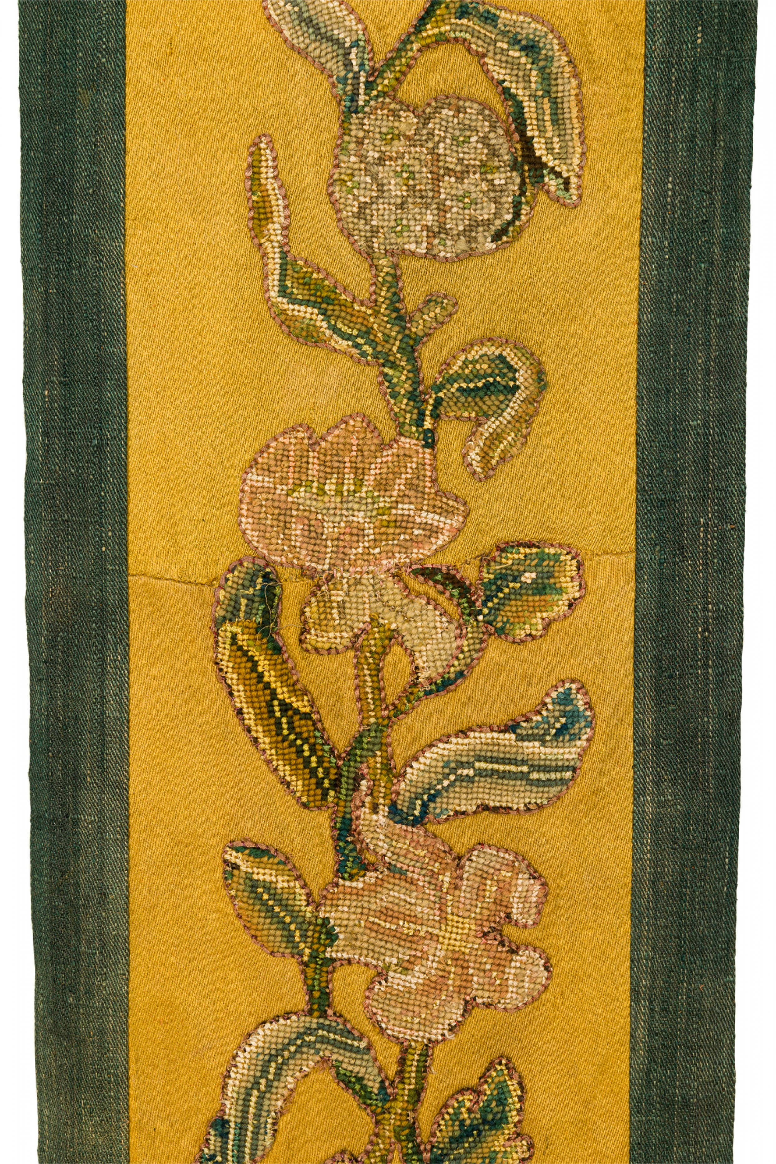 Pair of Antique Yellow and Green Floral Needlepoint Tapestry Wall Hangings