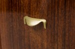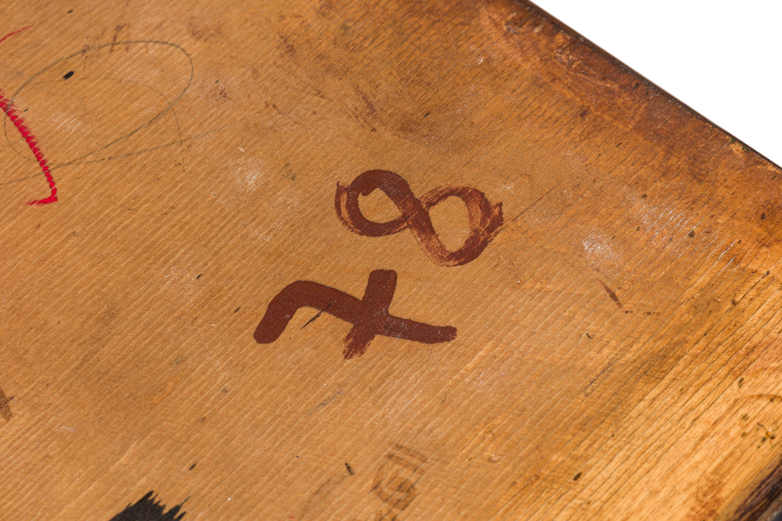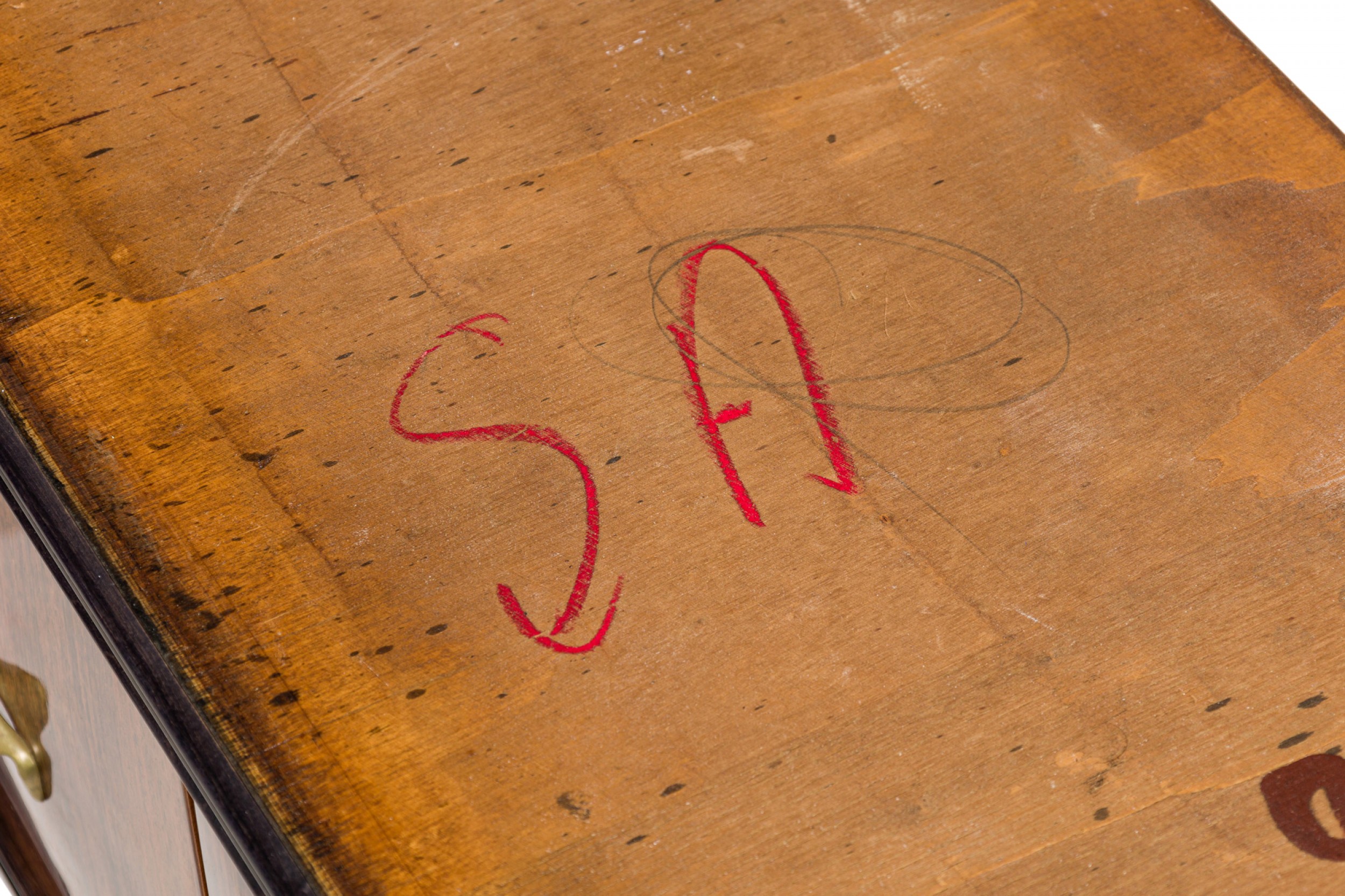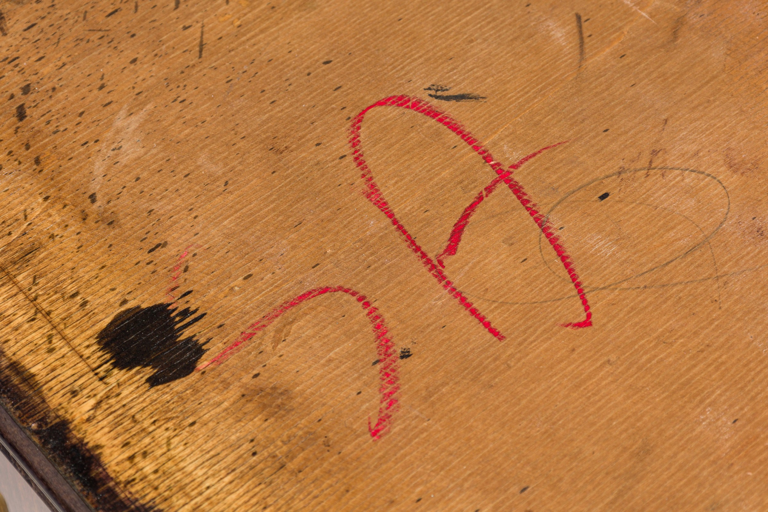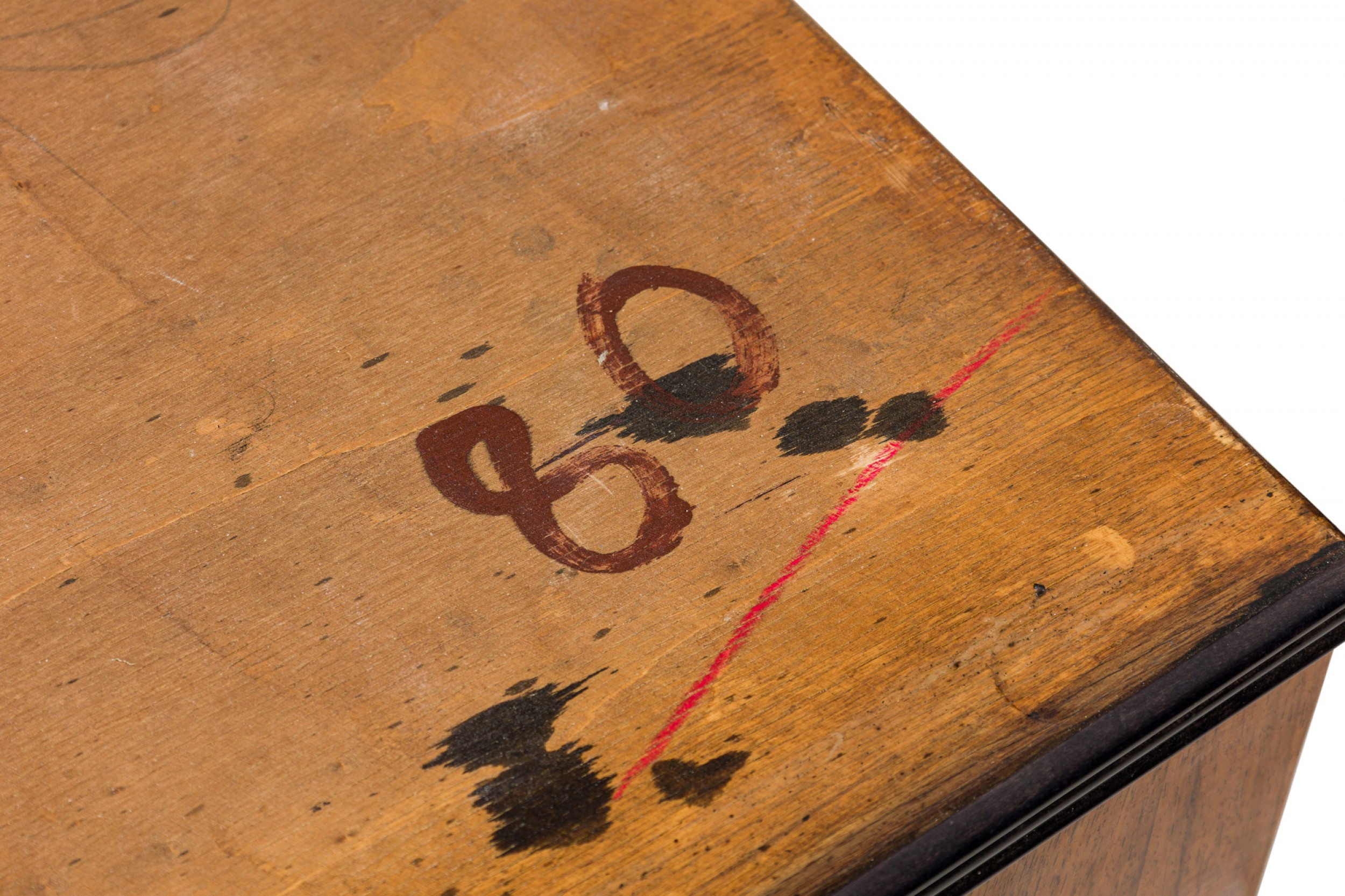 Style: Art Deco Materials & Techniques: Bronze, glass, metal, veneer, wood Category: Tables, Cabinets & Case Goods, Dining Room Condition: One glass top with some damage to the gold coating Good; Wear consistent with age and use