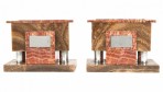 PAIR of Art Deco solid red and brown marble rectangular bookends with a decorative silver metal plate on the front and a recessed compartment in the top. (PRICED AS PAIR).