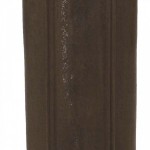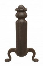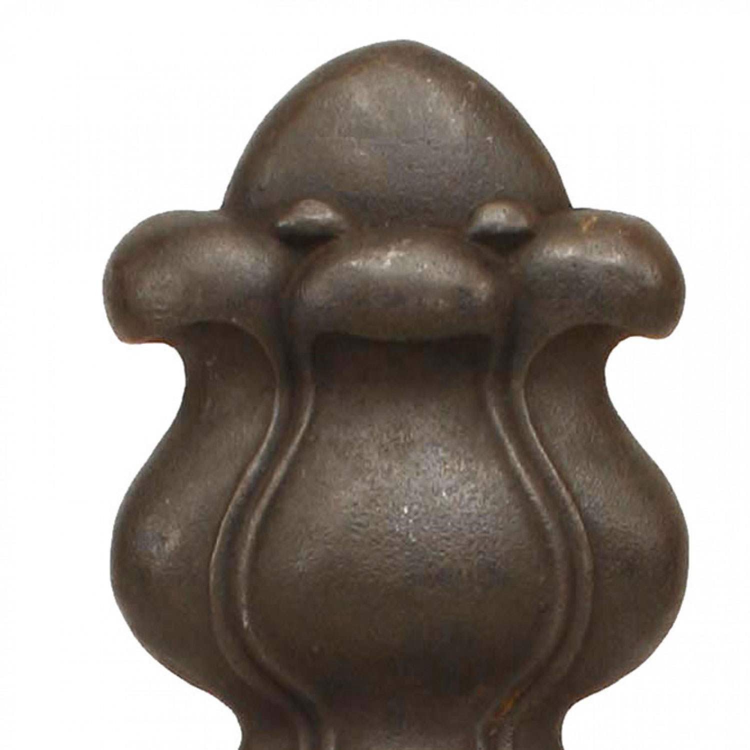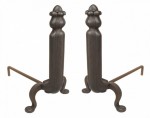 PAIR of American Art Nouveau iron andirons with foliate finials over a fluted design. (PRICED AS PAIR)