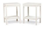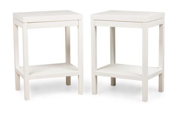 Pair of Asian Contemporary Style Raffia Wrapped White Painted Side Tables