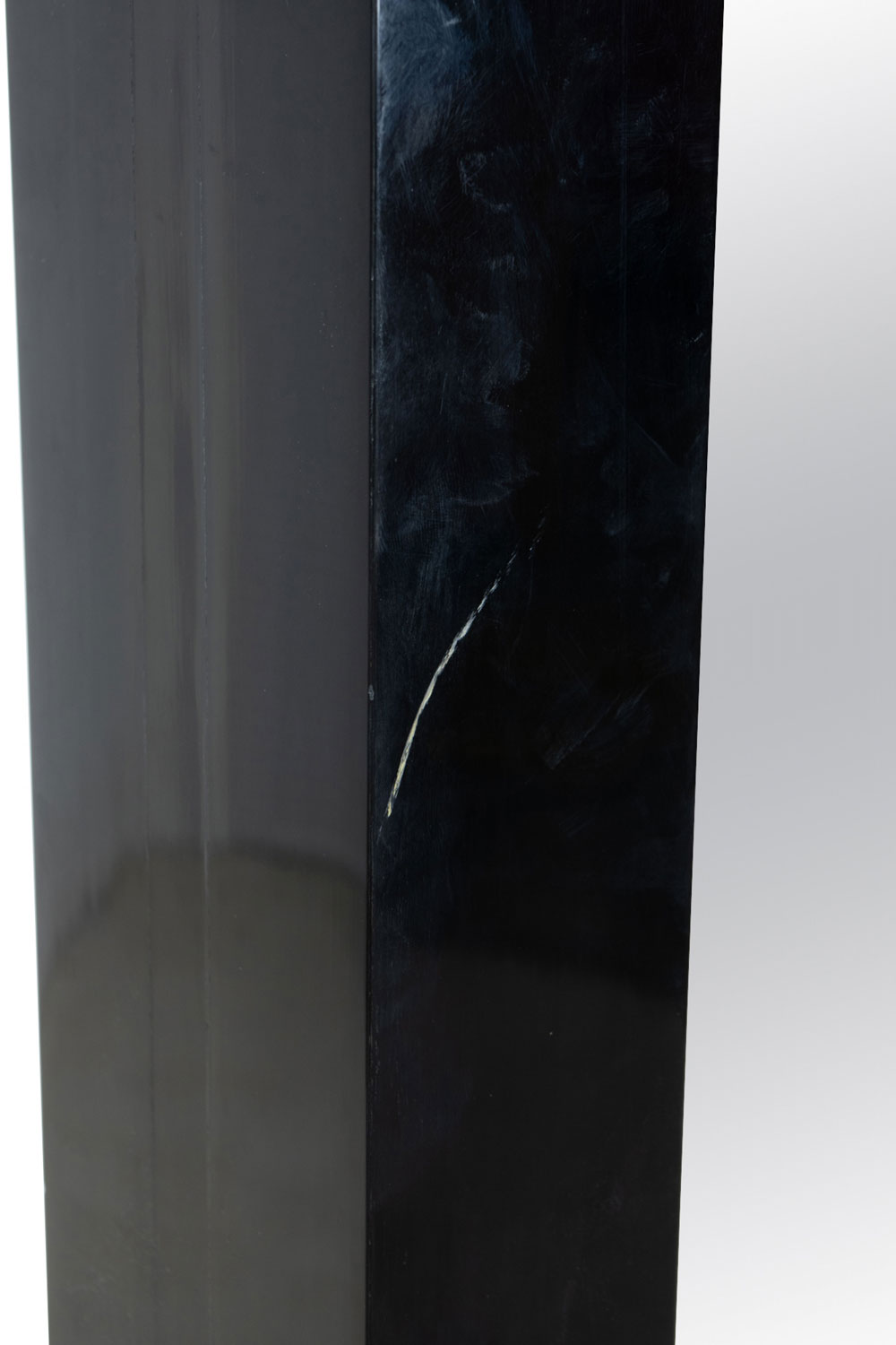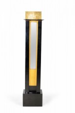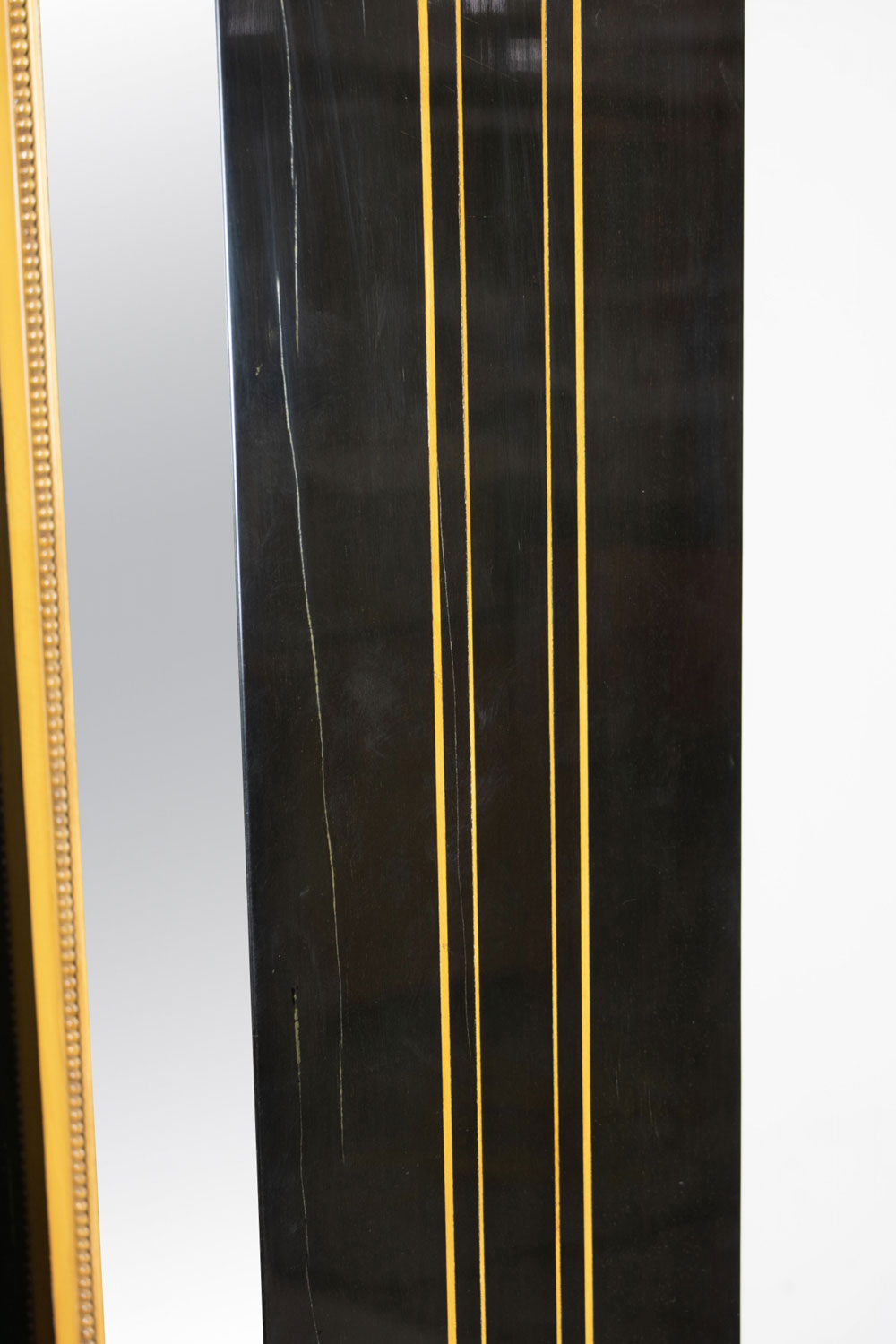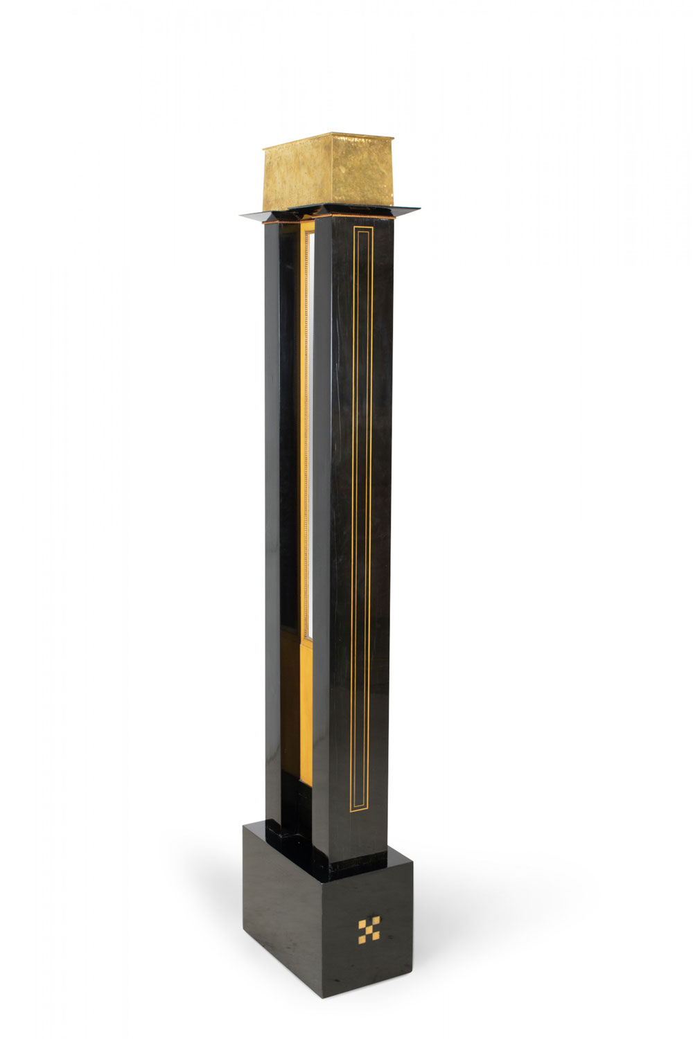 PAIR of Austrian Secessionist pedestals / jardinieres with black lacquered and birch wood columns having beaded trim centering a beveled mirror topped with a separate hammered brass planter (attributed to JOSEF HOFFMAN) (PRICED AS PAIR).