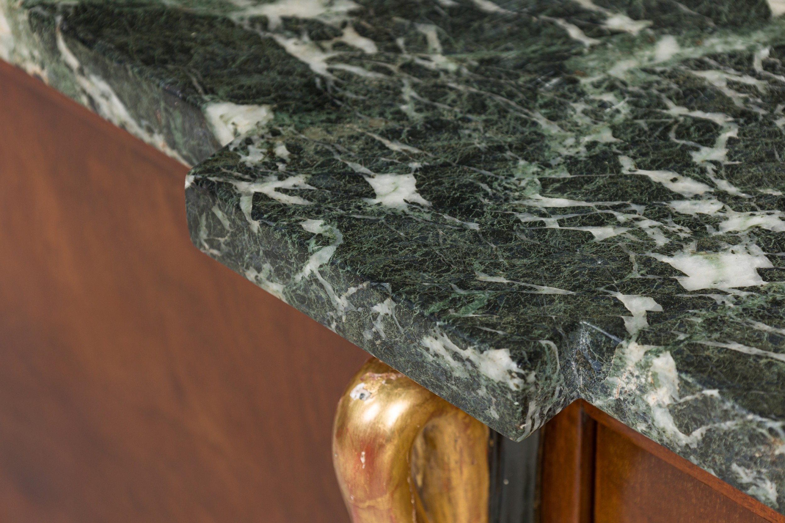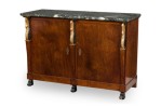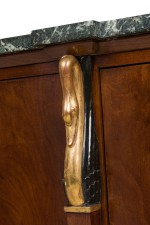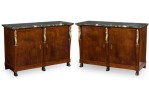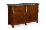 Pair of Baltic Empire-Style Black and Green Marble and Mahogany and Parcel-Gilt 2-Door Credenzas