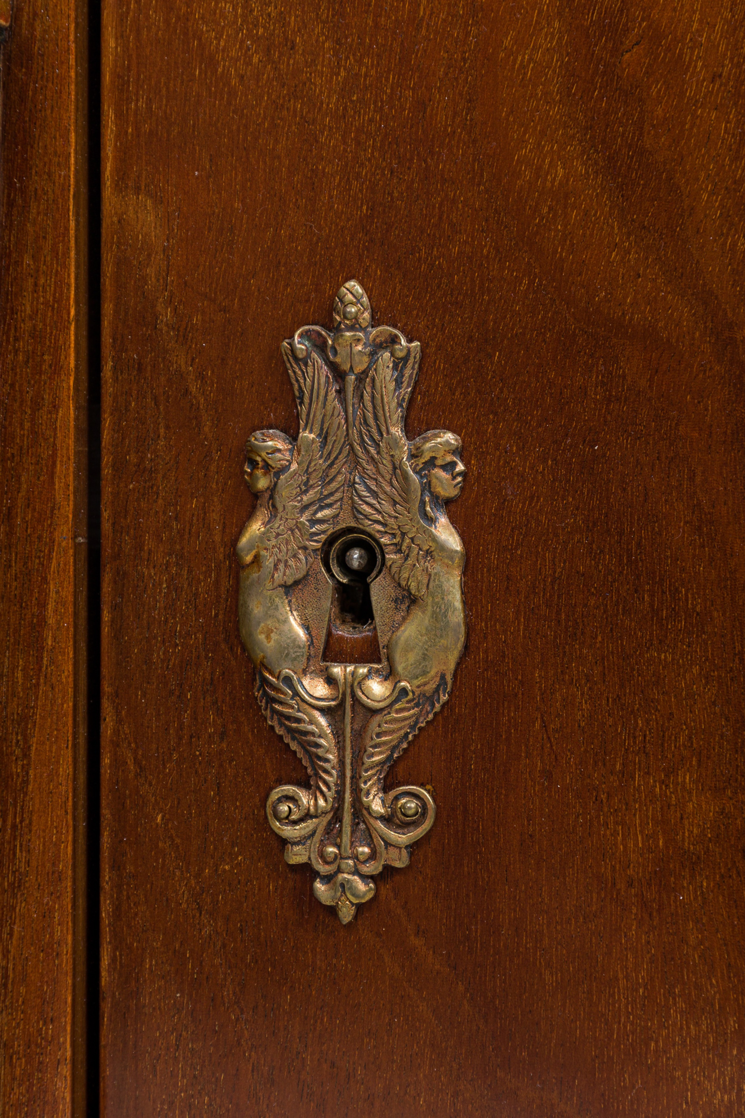 Style: Continental Materials & Techniques: Bronze, gilt / giltwood, mahogany, metal, wood Category: Dining Room Condition: Missing keys, locked shut Good; Wear consistent with age and use