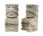 PAIR of Pre-Columbian-style carved Aztec grey marble bookends (PRICED AS PAIR)