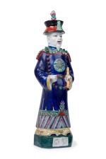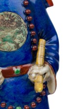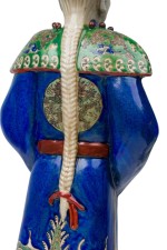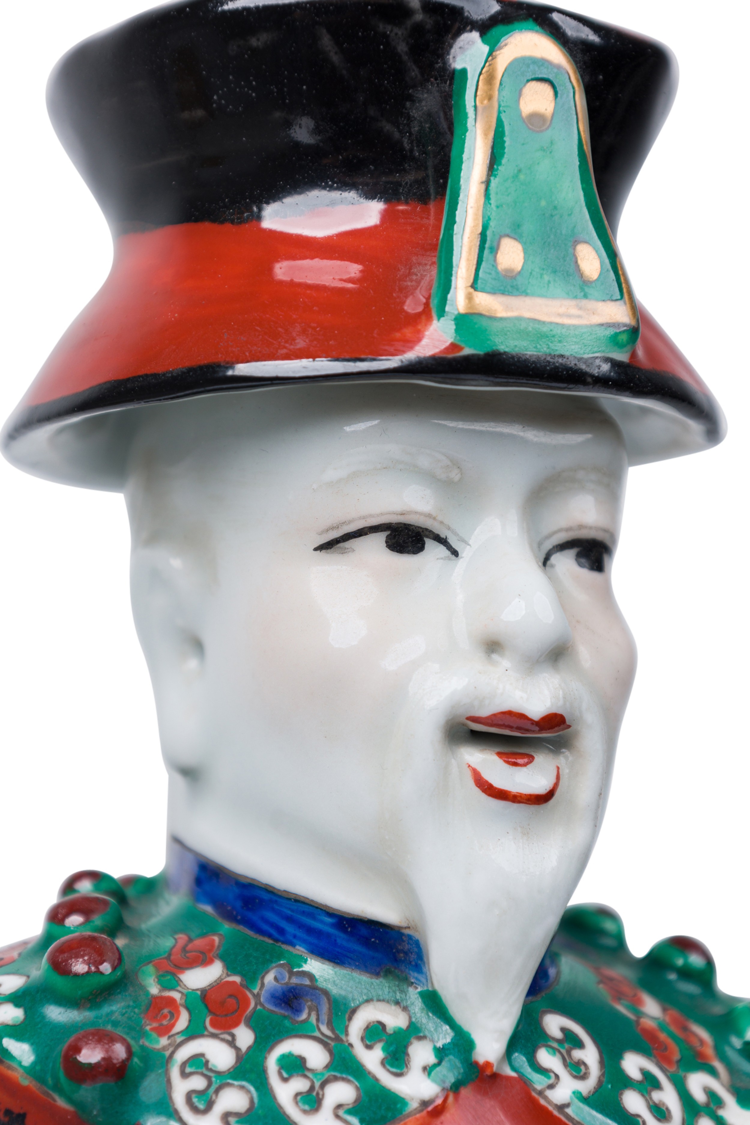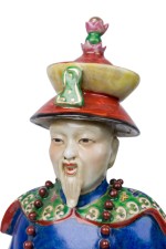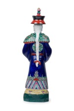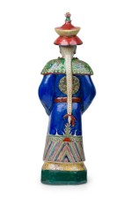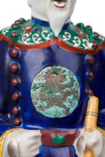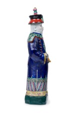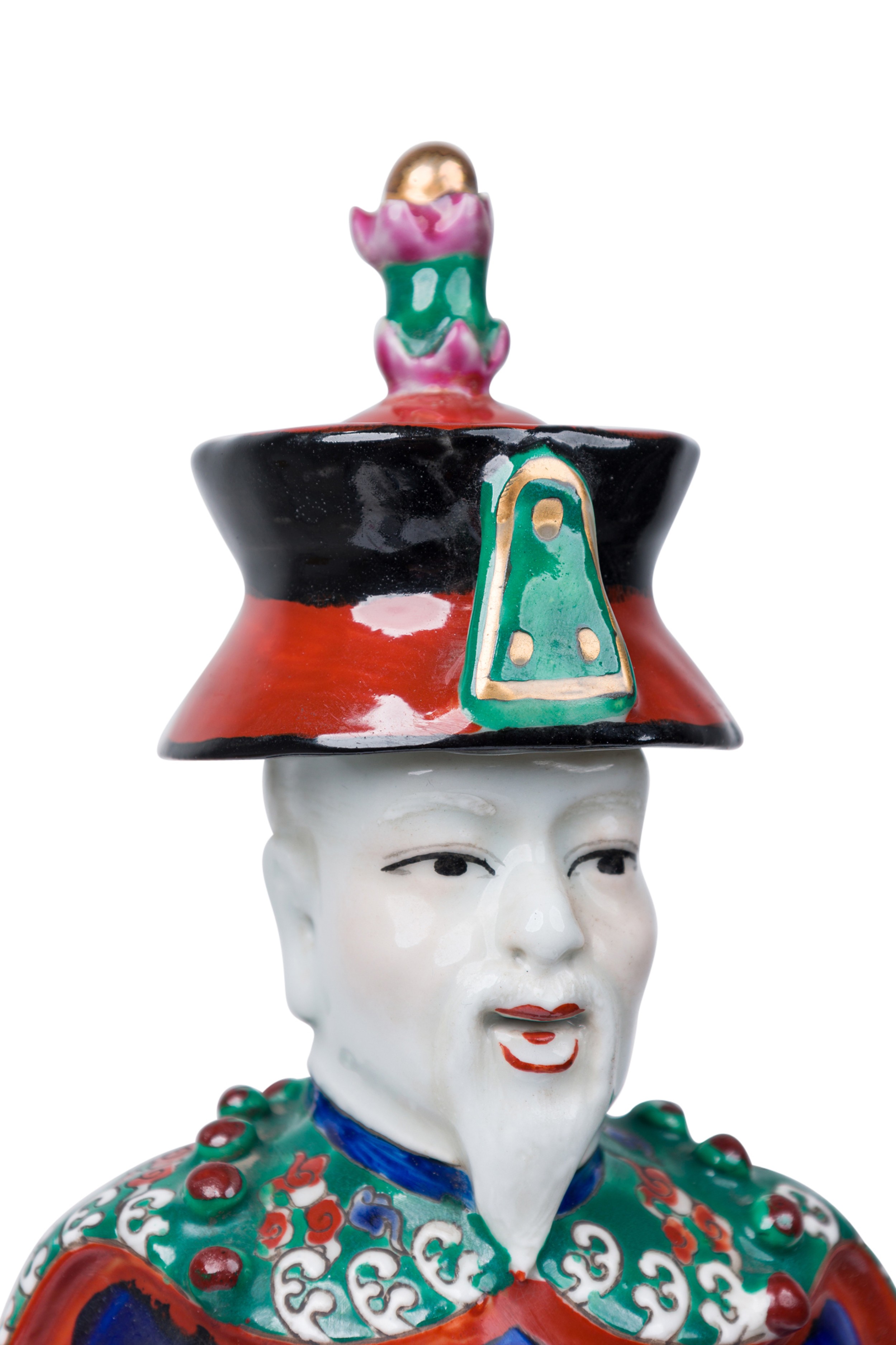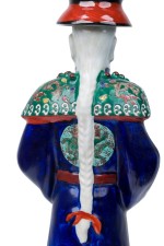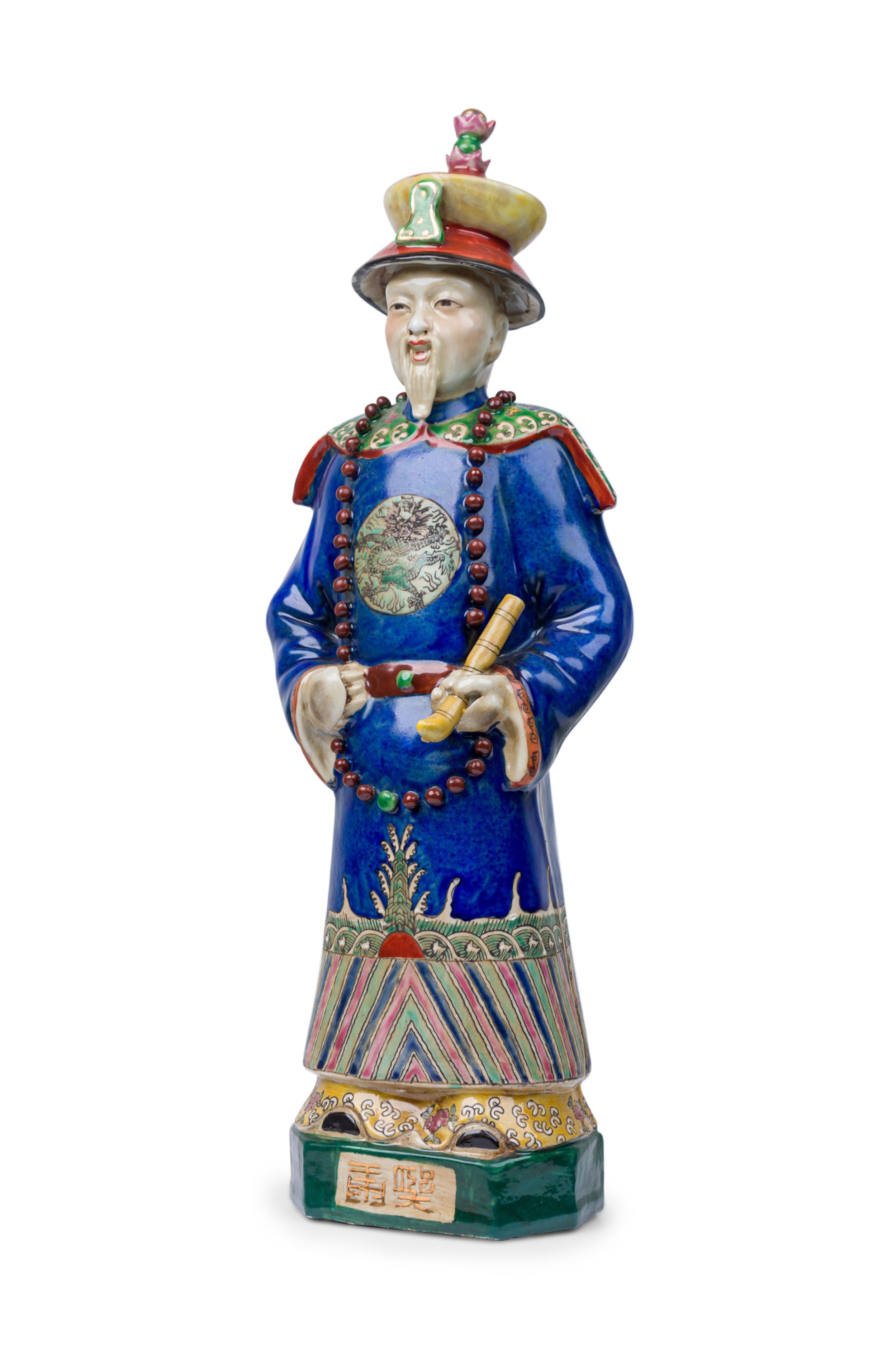 Pair of Chinese Painted Ceramic Figures Depicting a Blue Robed Emperor