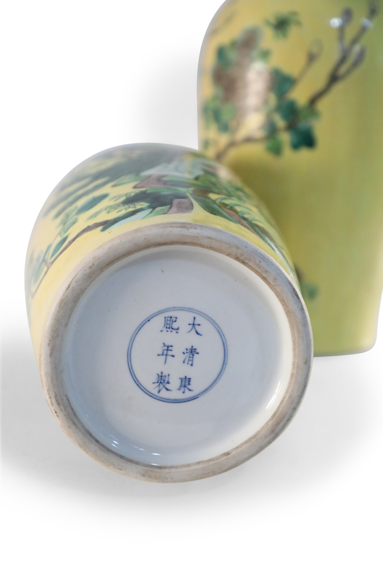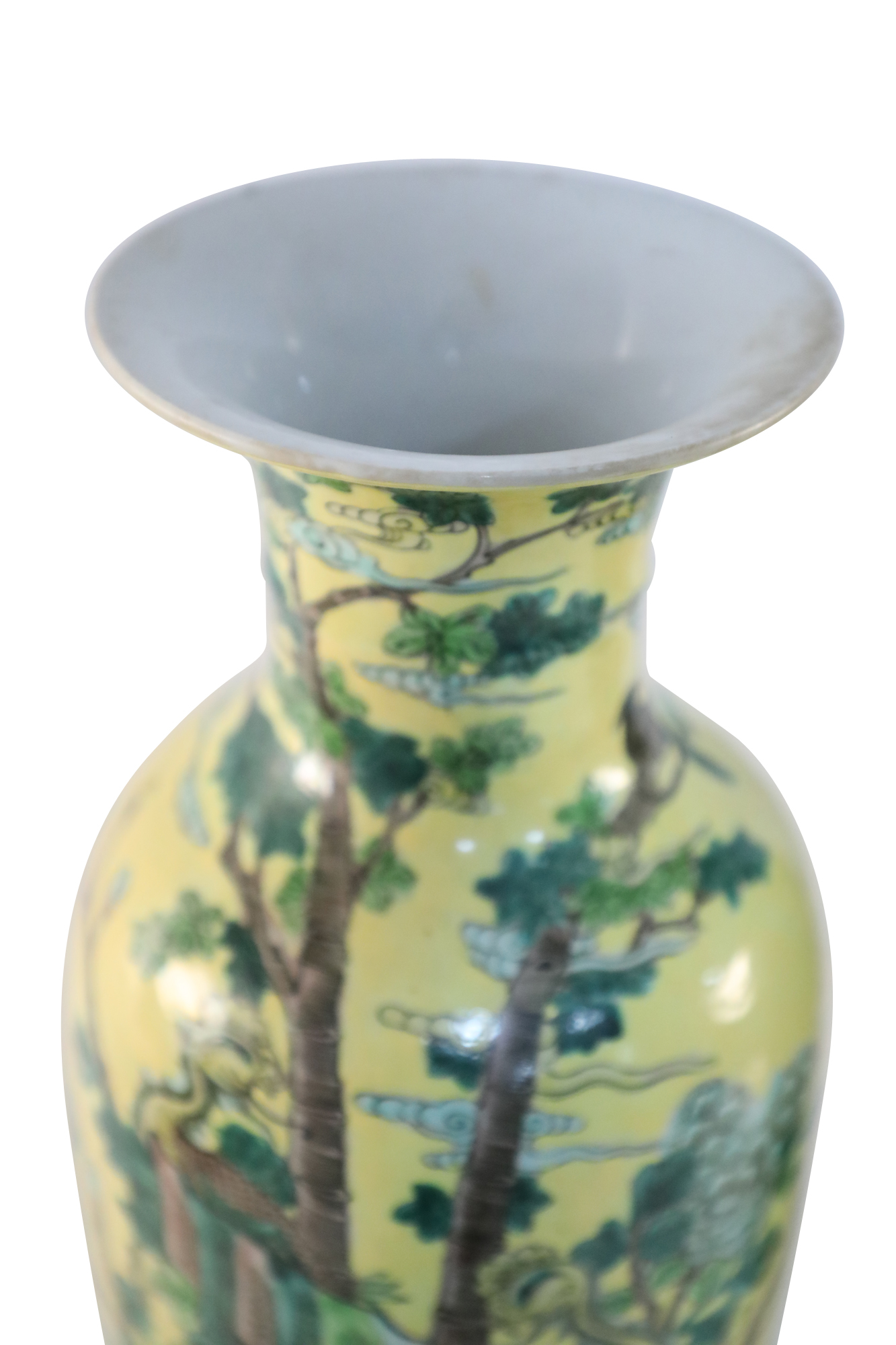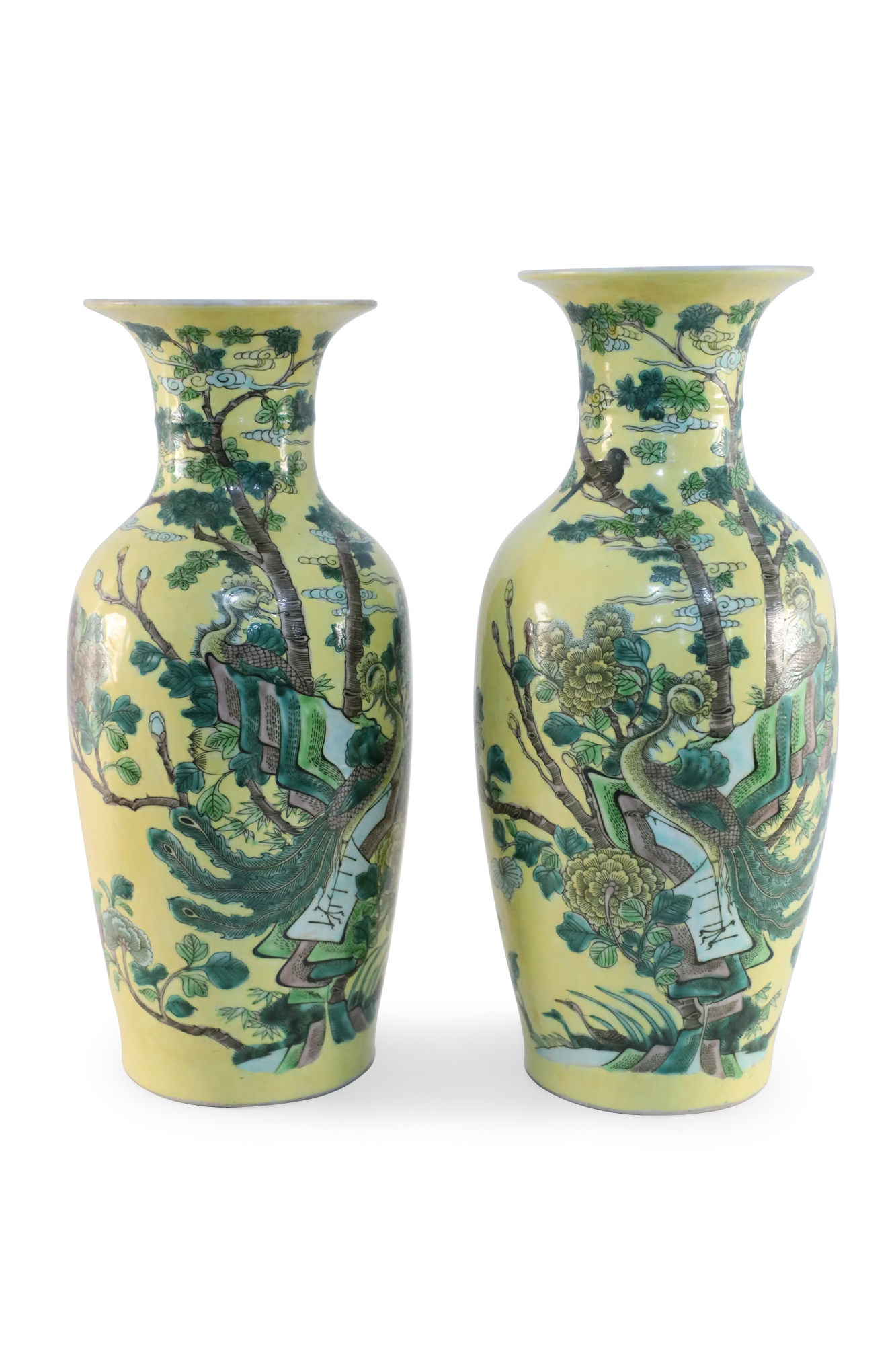 Pair of Chinese Yellow and Natural Scene Vases