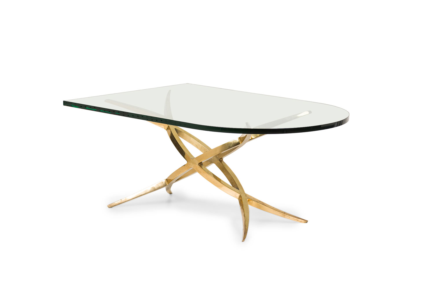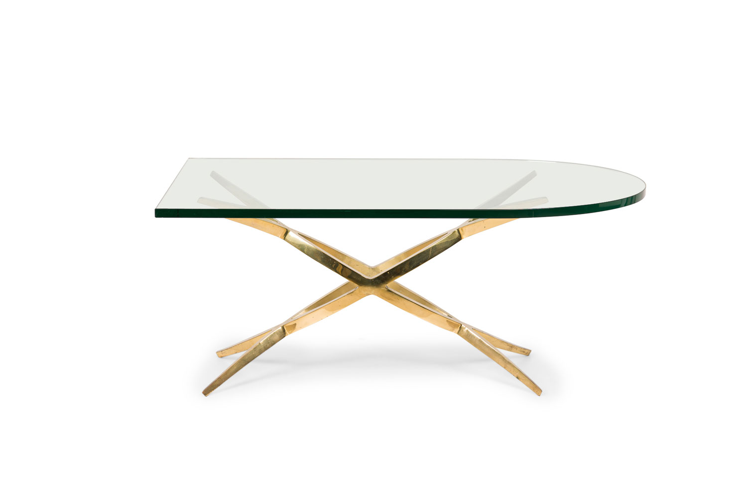 Style: Contemporary/Post-War Design Materials & Techniques: Bronze, glass, metal Category: Tables Good; Wear consistent with age and use