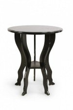 PAIR of Contemporary wooden end tables with a brown painted finish with a circular top and five shaped legs with a lower 5-sided stretcher shelf. (PRICED AS PAIR) (Similar table: NWL0612).