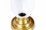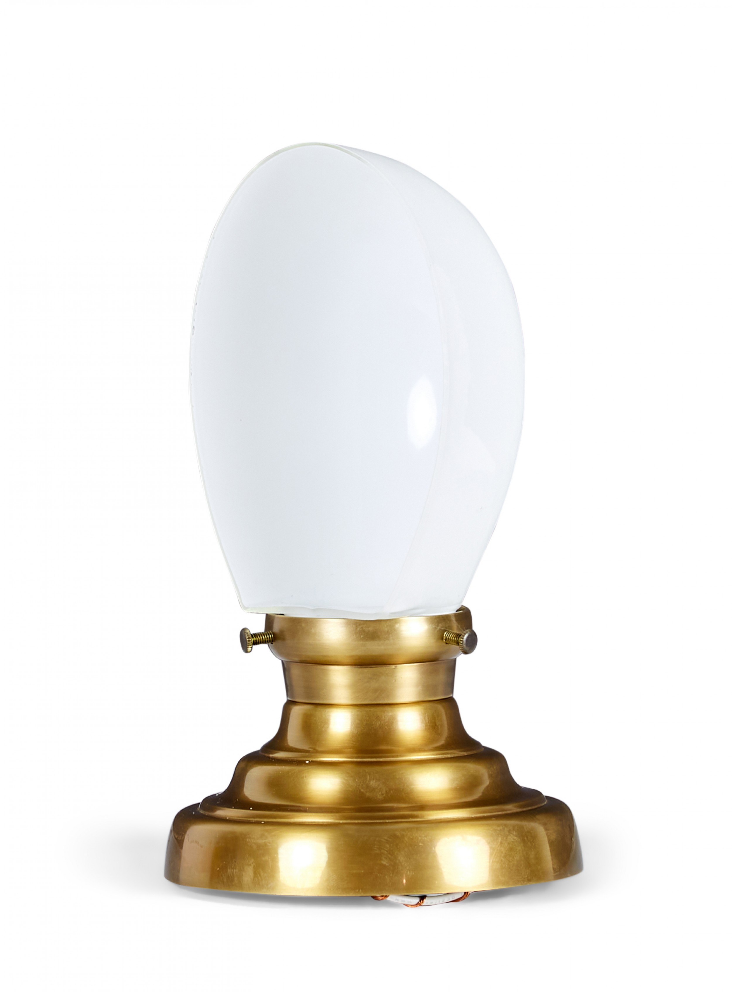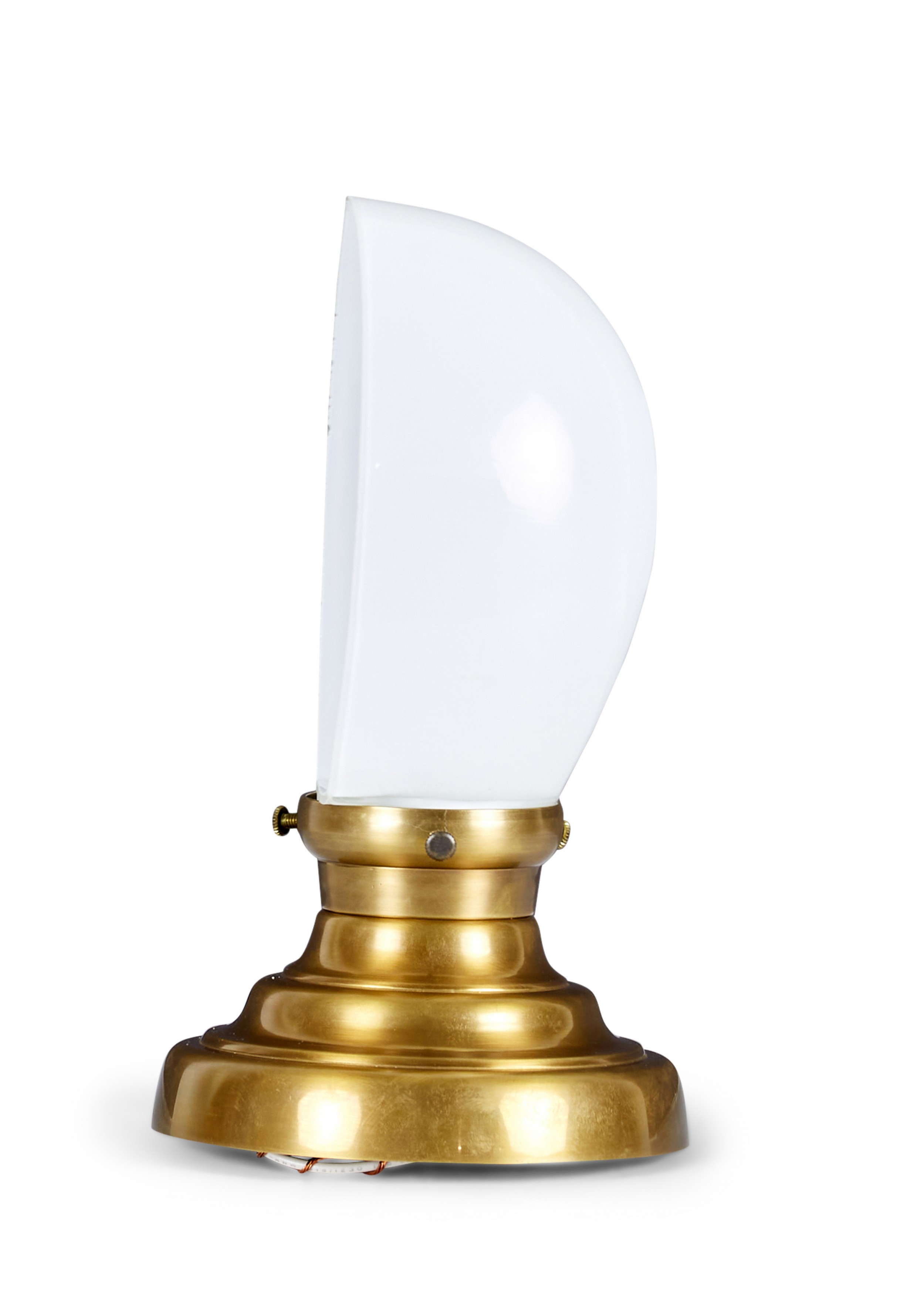 PAIR of Contemporary brass flush-mount wall sconces with white glass half globe shades. (URBAN ARCHAEOLOGY)(PRICED AS PAIR).