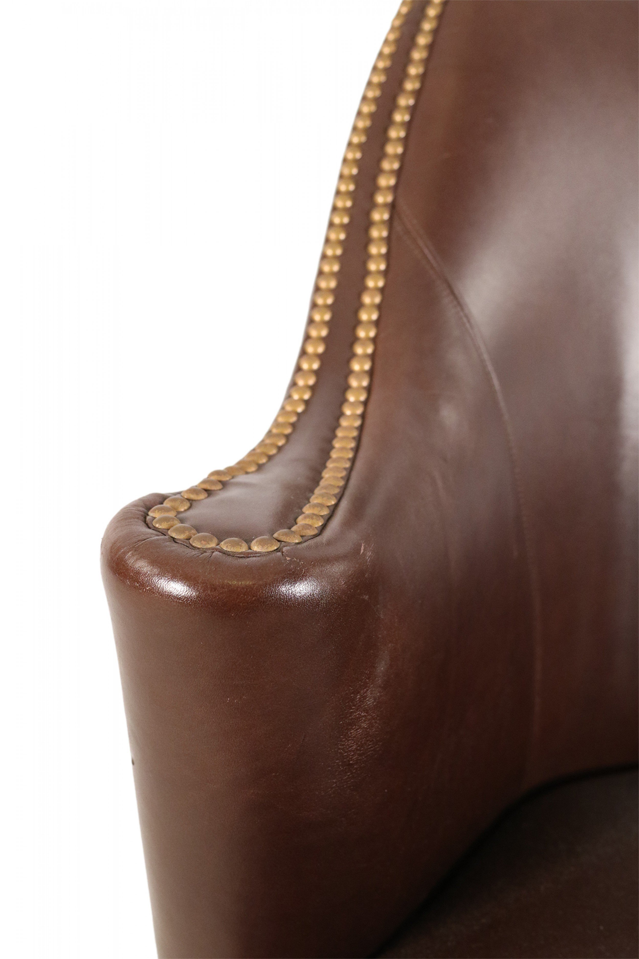 Contemporary Brown Leather Rounded Back Club / Armchair