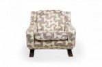 Pair of Contemporary Modern Beige and Gray Upholstered Armchairs with Ebonized Bases