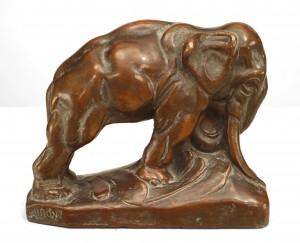 PAIR of Continental (possibly Austrian - 20th Century) bronze-patinated copper bookends in the form of elephants. (PRICED AS PAIR)