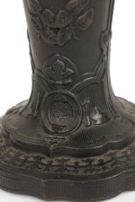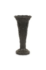 PAIR of English (19th Cent) black basalt earthenware trumpet shaped vases with floral relief (minor chip to 1 rim) (PRICED AS PAIR).